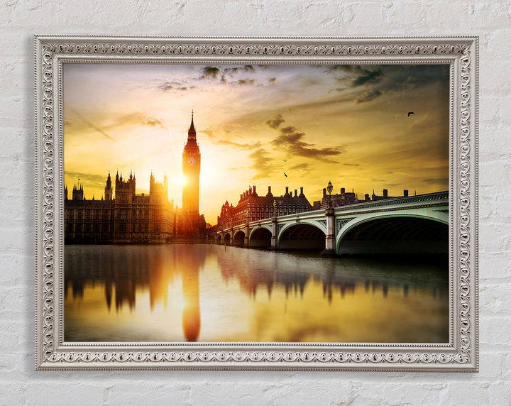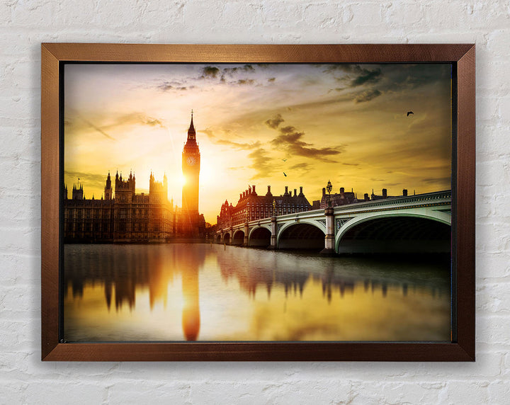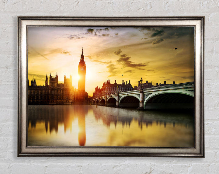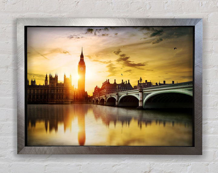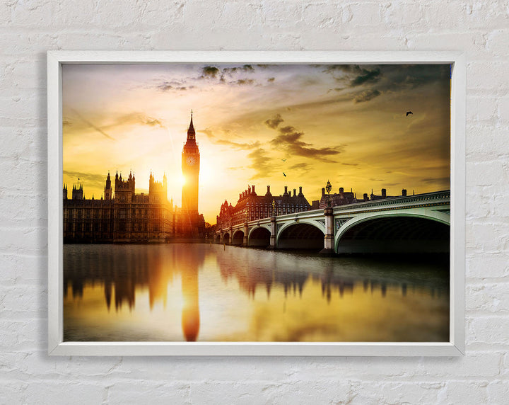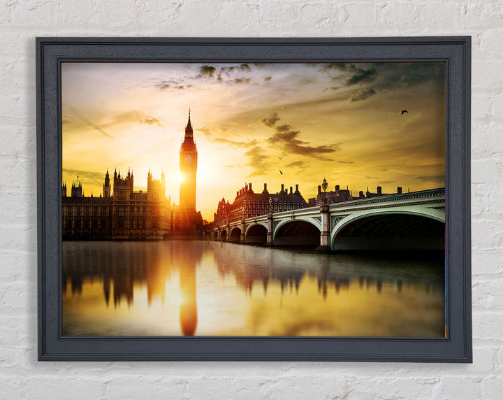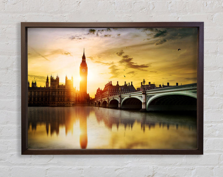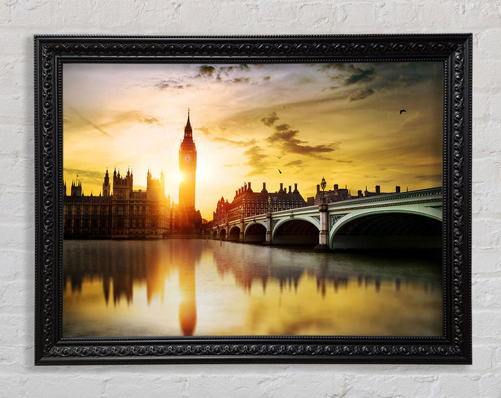 Capture the magic of London with the Sunset Through Big Ben Framed Print. This stunning piece of framed art showcases the iconic Big Ben bathed in the warm hues of a beautiful sunset. Available in six sizes from small to oversized, it fits perfectly in any space, large or small. Choose from a variety of colors to match your decor. Each print is handmade in the United Kingdom, ensuring exceptional craftsmanship and quality. Ready to hang, this framed art brings a touch of elegance and a piece of British heritage to your home. Brighten your walls with this timeless and captivating scene.