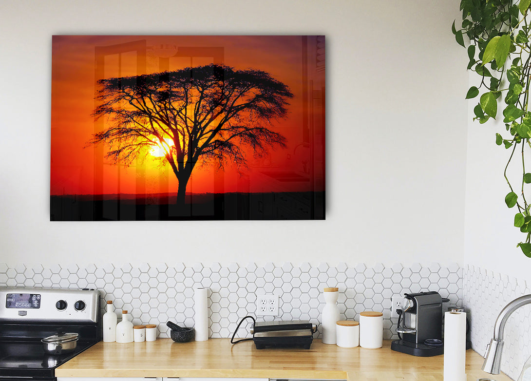 Sunset Through The Trees acrylic print, UV printed onto 5mm thick acrylic glass. Comes with everything you need to hang on your wall.