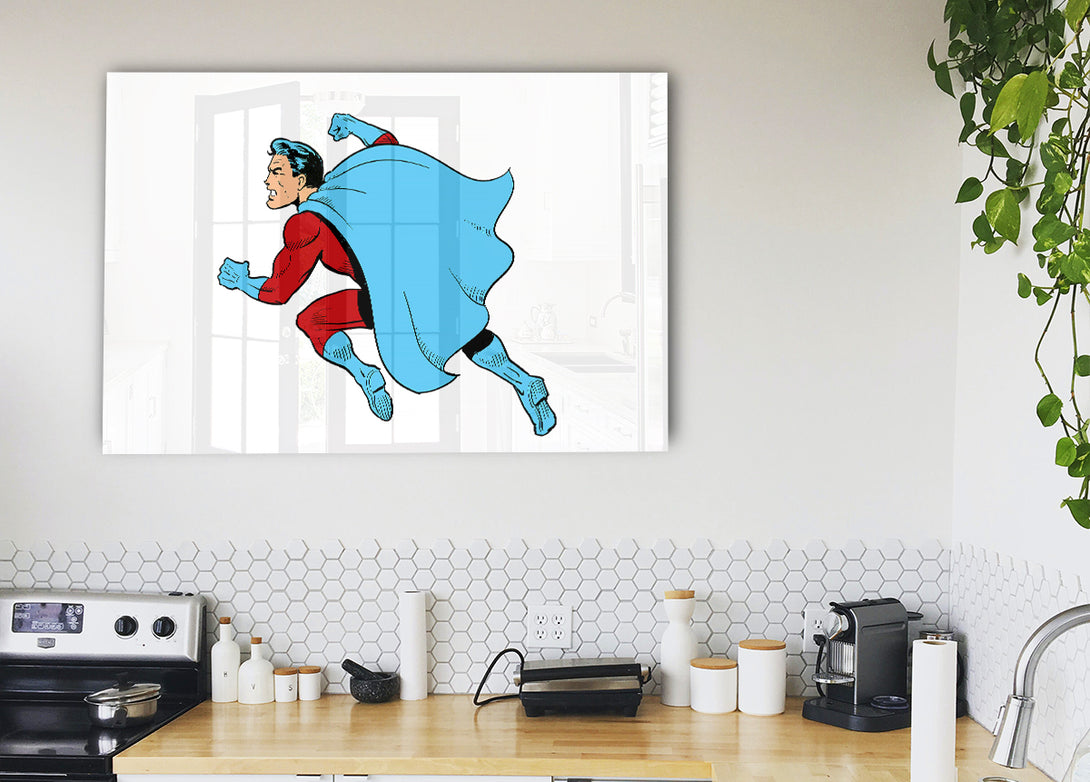 Superhero 3 acrylic print, UV printed onto 5mm thick acrylic glass. Comes with everything you need to hang on your wall.