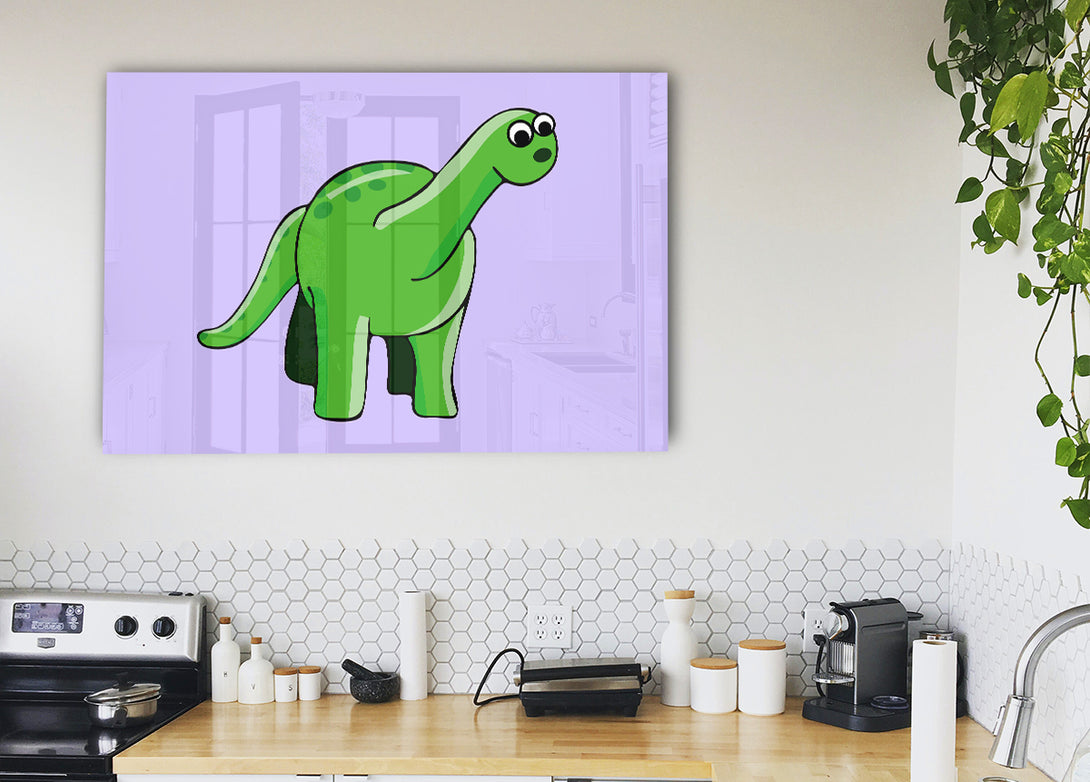 Suprised Dinosaur Lilac acrylic print, UV printed onto 5mm thick acrylic glass. Comes with everything you need to hang on your wall.