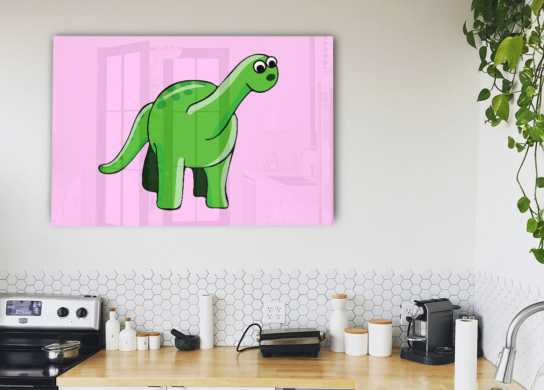 Suprised Dinosaur Pink acrylic print, UV printed onto 5mm thick acrylic glass. Comes with everything you need to hang on your wall.