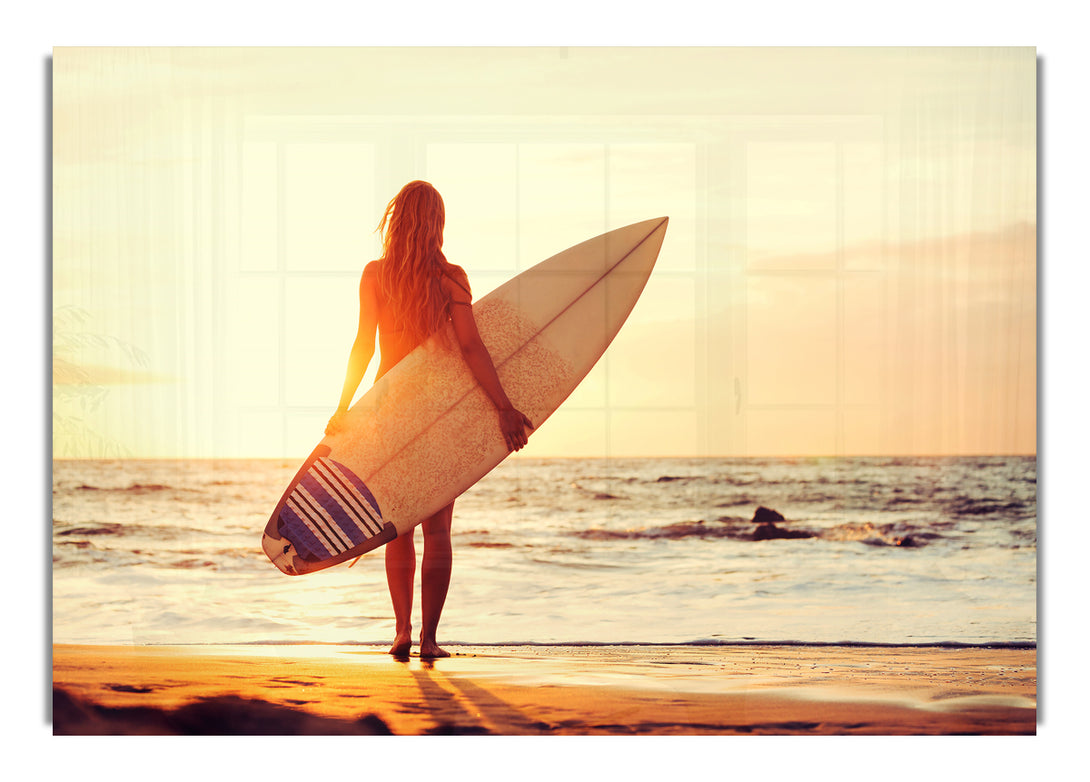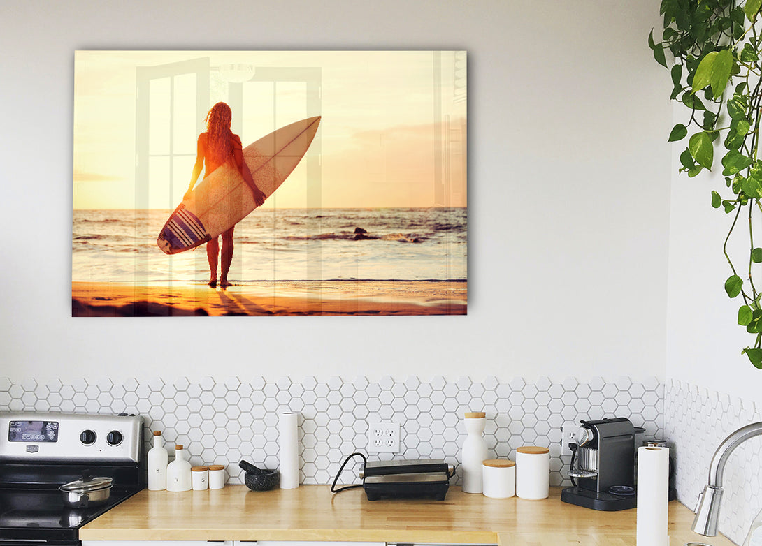 Surfers Sunrise acrylic print, UV printed onto 5mm thick acrylic glass. Comes with everything you need to hang on your wall.