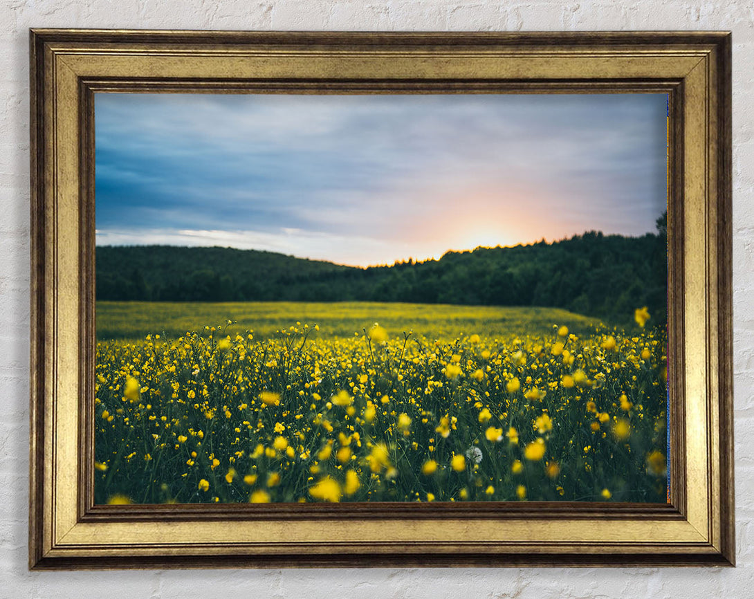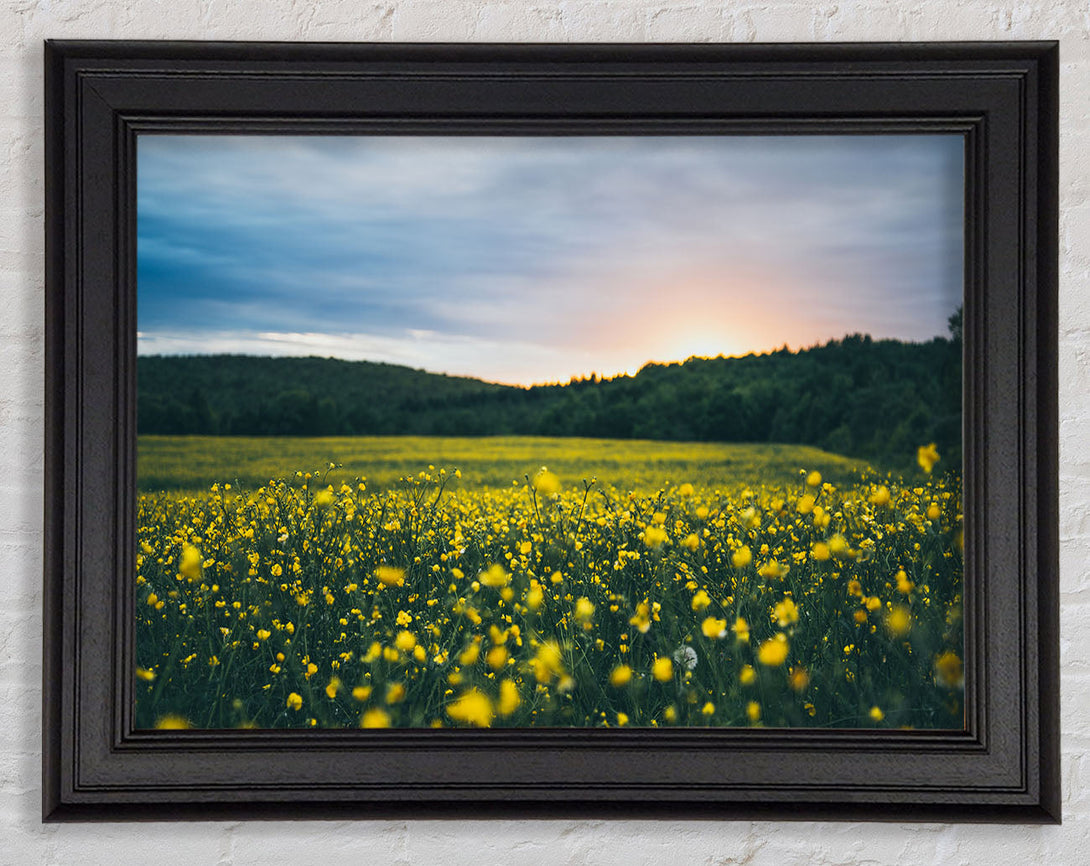Surreal field of yellow flowers Framed Print