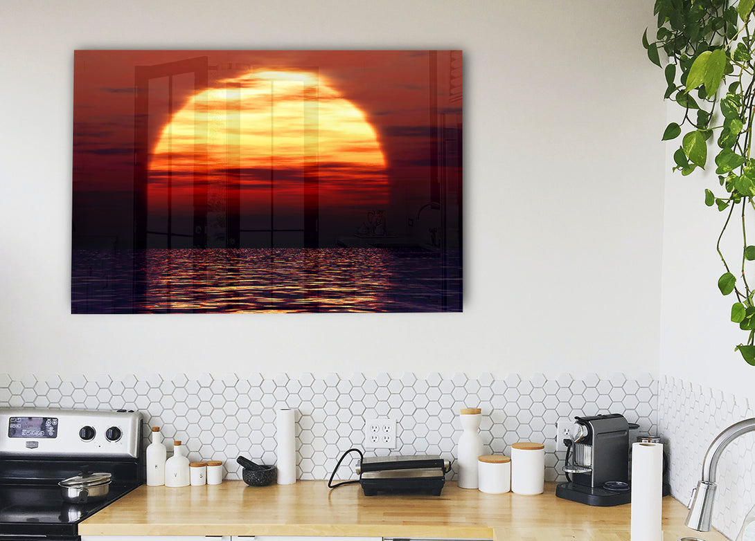 Surreal Ocean Sun acrylic print, UV printed onto 5mm thick acrylic glass. Comes with everything you need to hang on your wall.