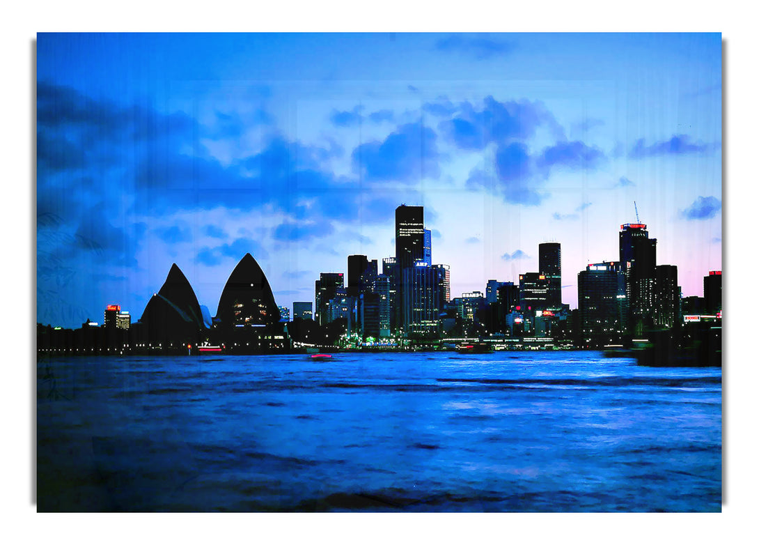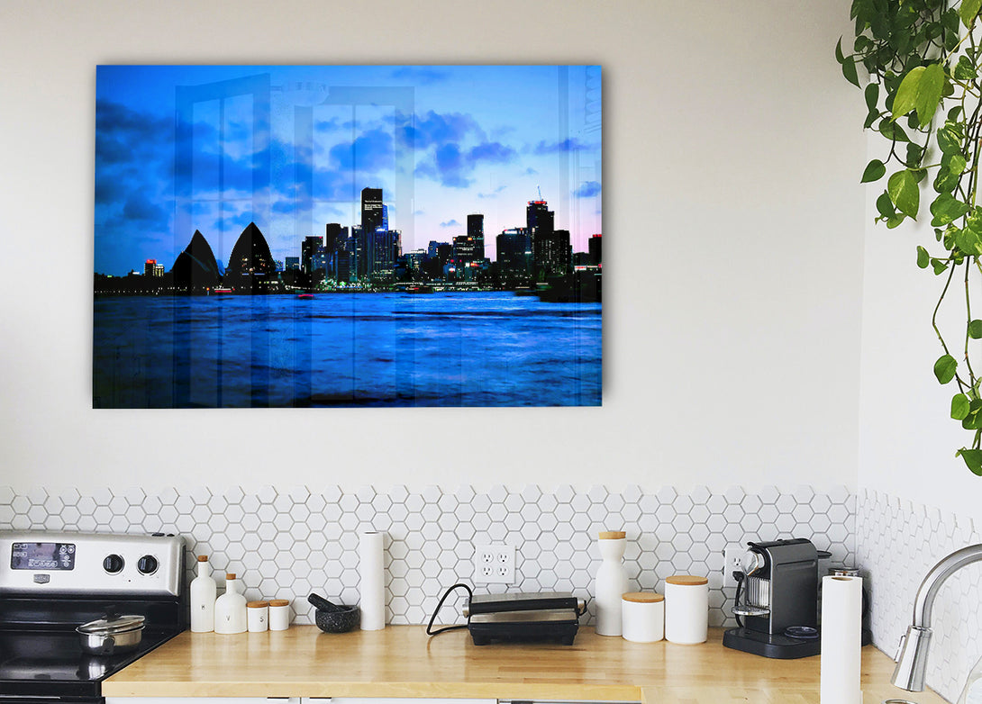 Syndey Opera House Afar Blue acrylic print, UV printed onto 5mm thick acrylic glass. Comes with everything you need to hang on your wall.