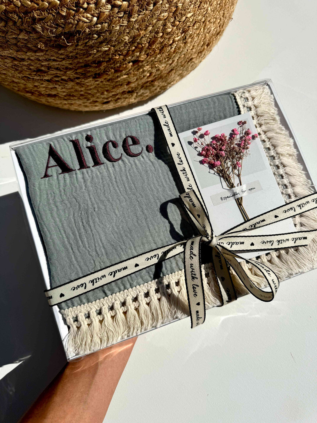Keywords: Personalized Baby Blanket, Newborn Gift, Baby Shower Gift, Muslin Blanket, Baby Keepsake, Baby Name Gift, Luxury Baby Gift, Custom Embroidered Blanket.