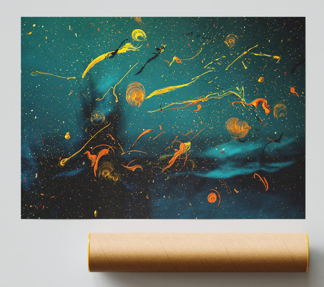Our Teal And Gold Drips Poster is printed 260 GSM premium lustre paper that offers vibrant colours and exceptional detail.