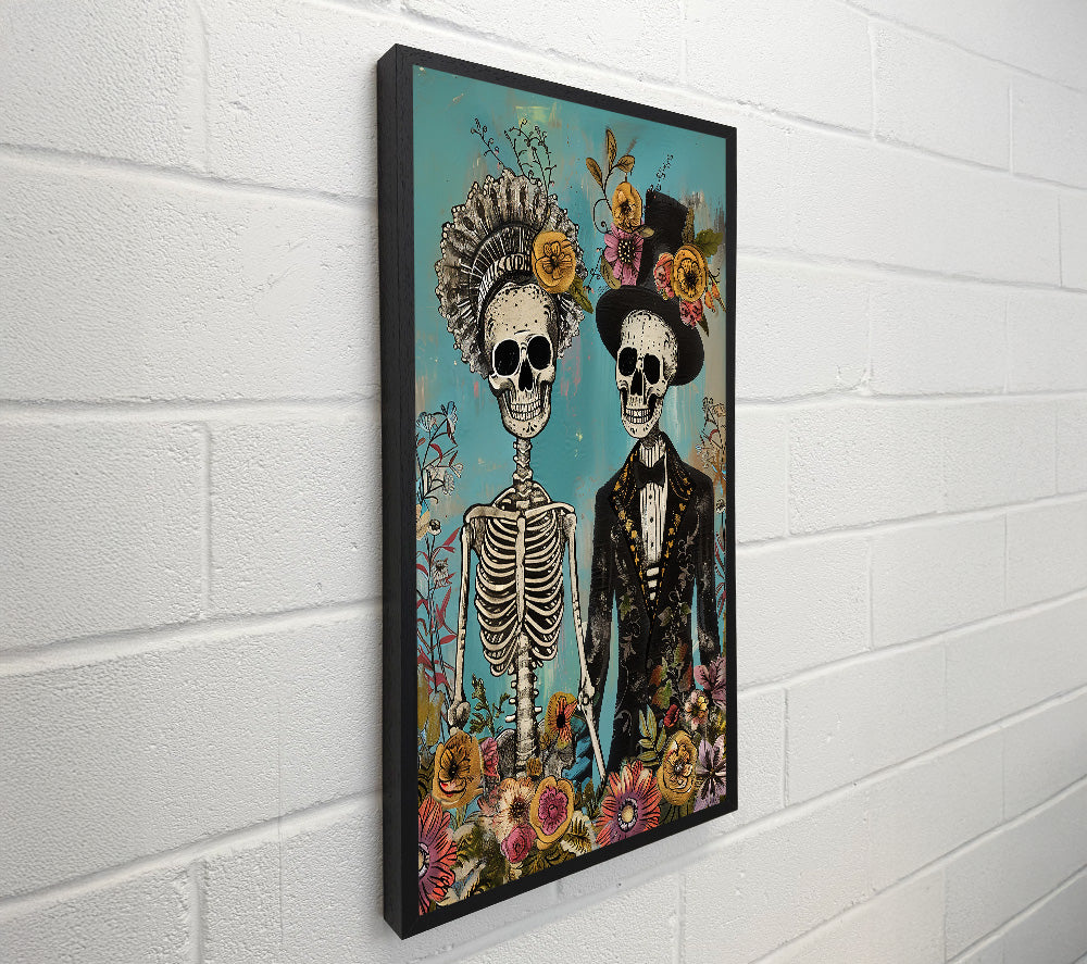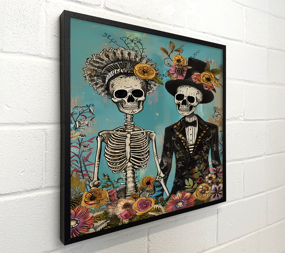 Teal Floral Skeletons