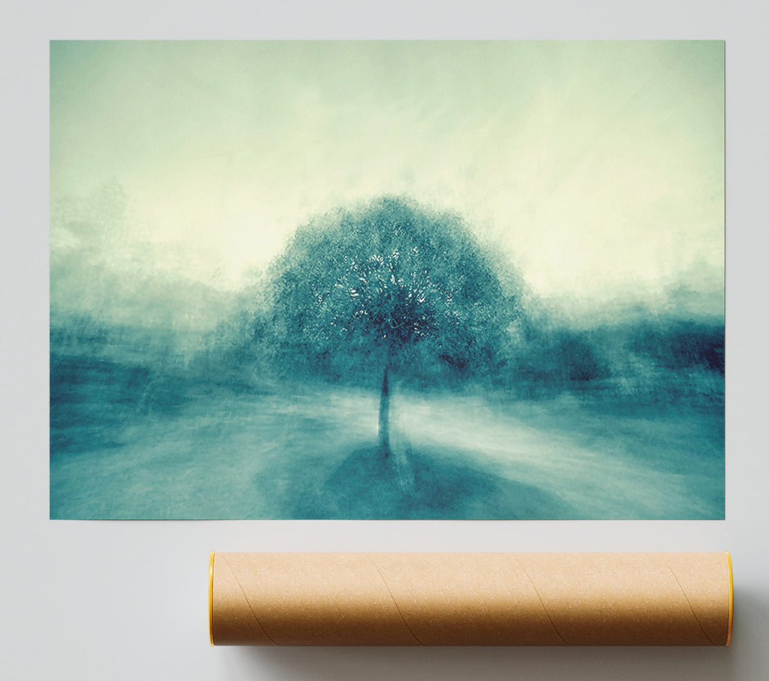 Teal Tree In Mist Poster