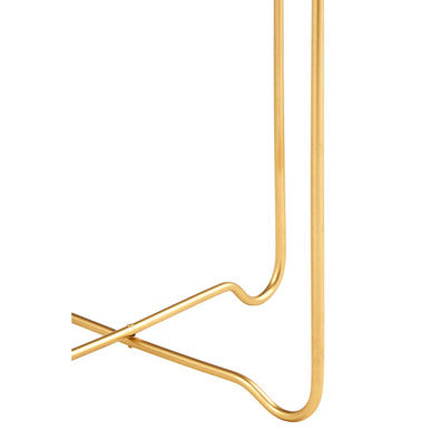 The minimal top rests neatly on a slim metallic stand; its intersecting legs are subtly curved from the feet, creating a unique design. The warm gold finish of the frame feels luxurious when paired with the sleek black top.