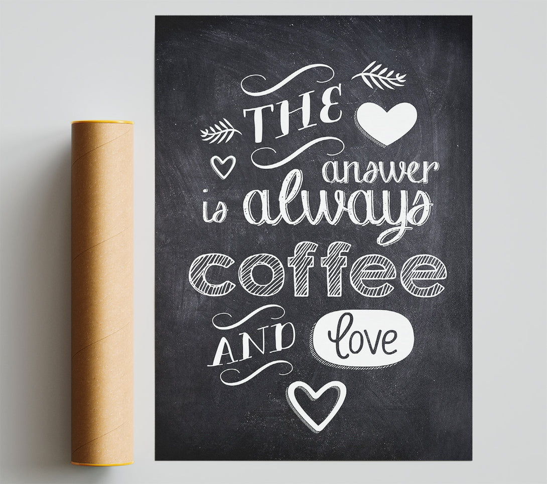 Our The Answer Is Always Coffee And Love Poster is printed 260 GSM premium lustre paper that offers vibrant colours and exceptional detail.