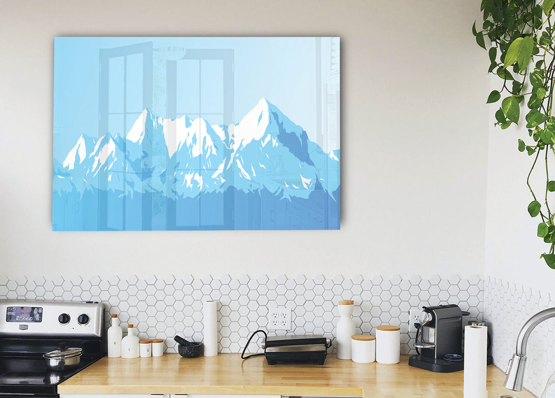 The Blue Mountain Snow acrylic print, UV printed onto 5mm thick acrylic glass. Comes with everything you need to hang on your wall.