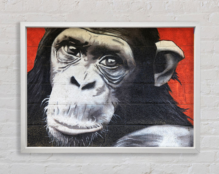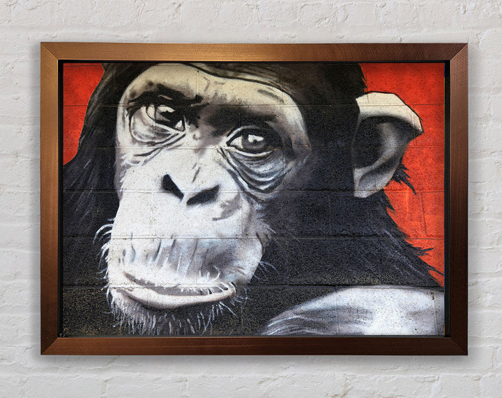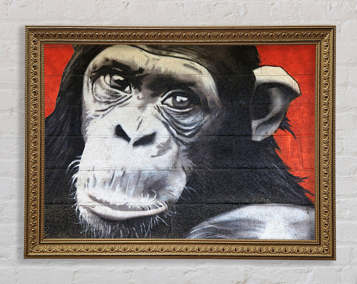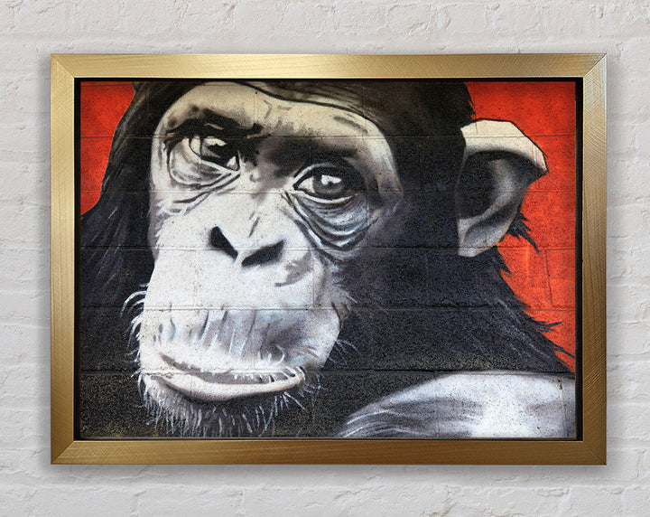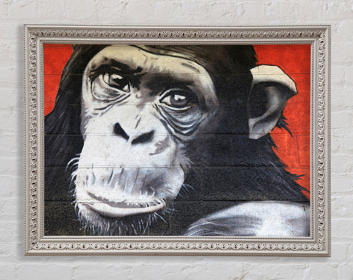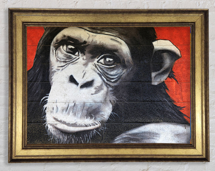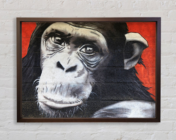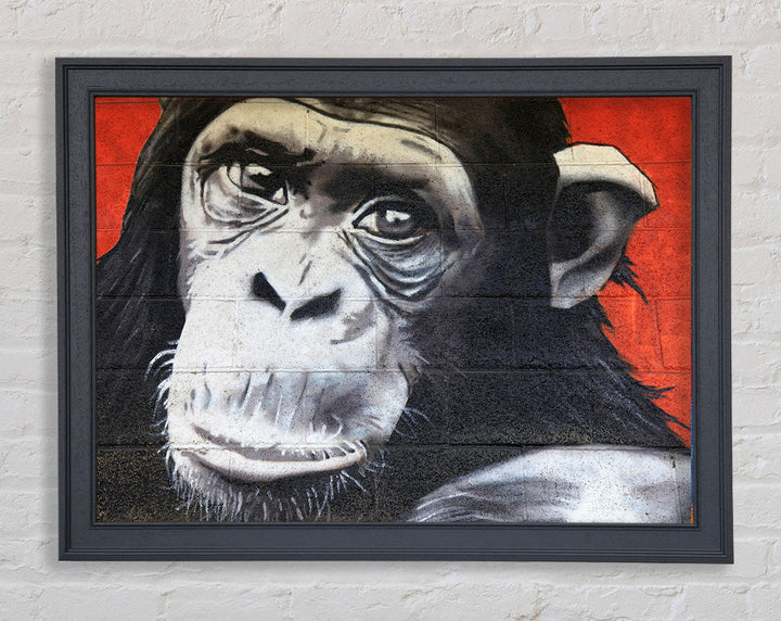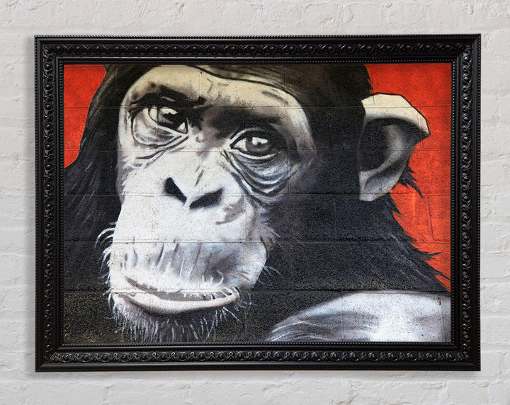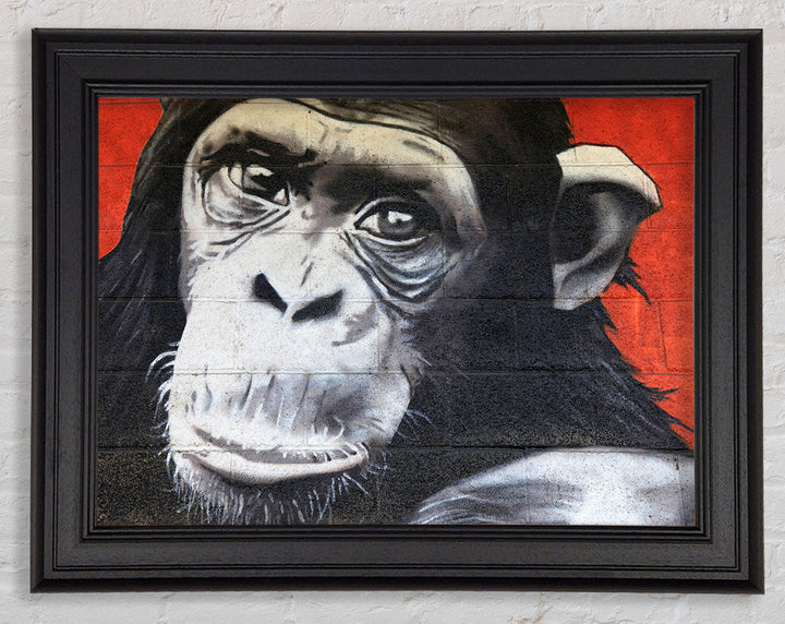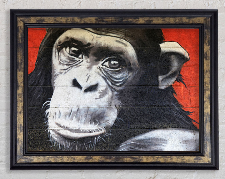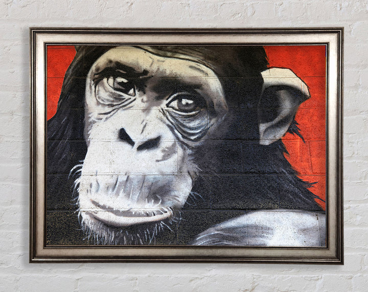 The Chimp On Red Framed Print