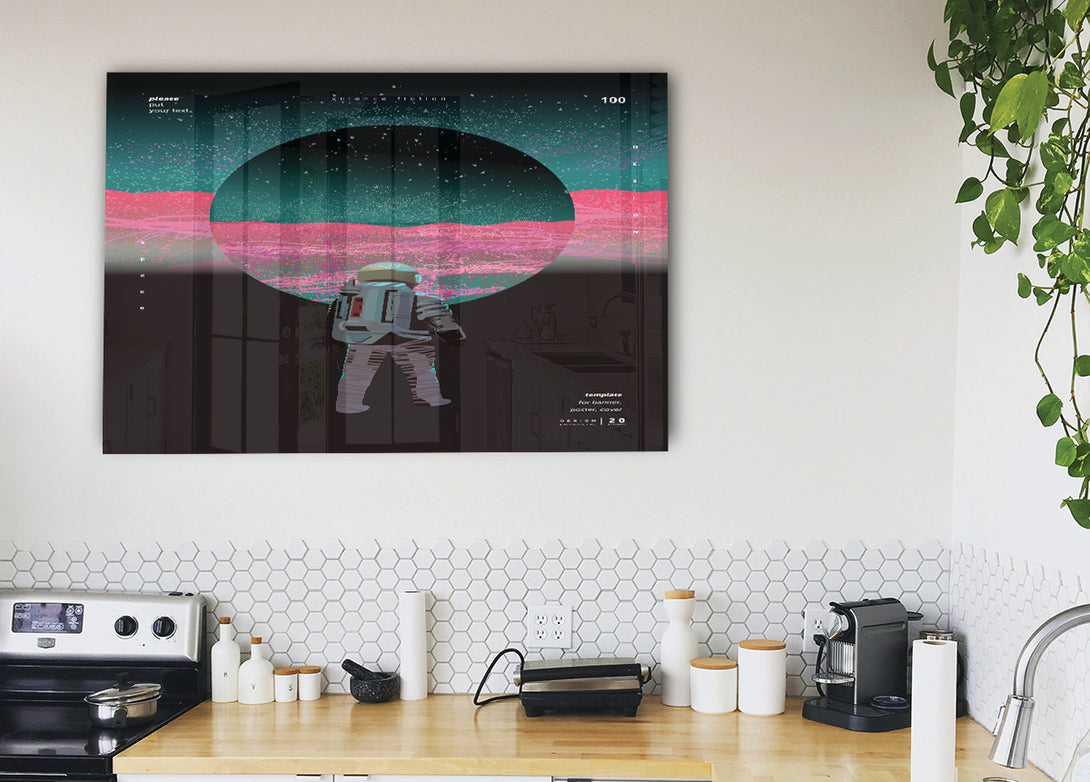 The Circle Astronaut acrylic print, UV printed onto 5mm thick acrylic glass. Comes with everything you need to hang on your wall.