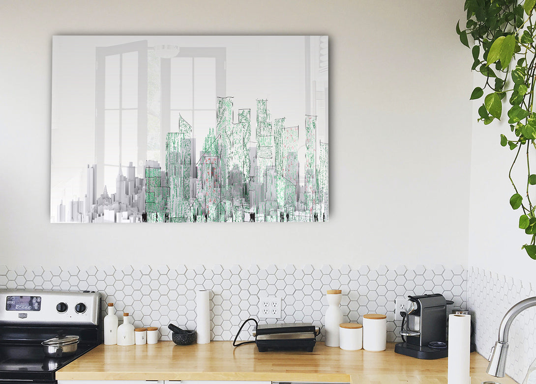 The City Sketch Art acrylic print, UV printed onto 5mm thick acrylic glass. Comes with everything you need to hang on your wall.