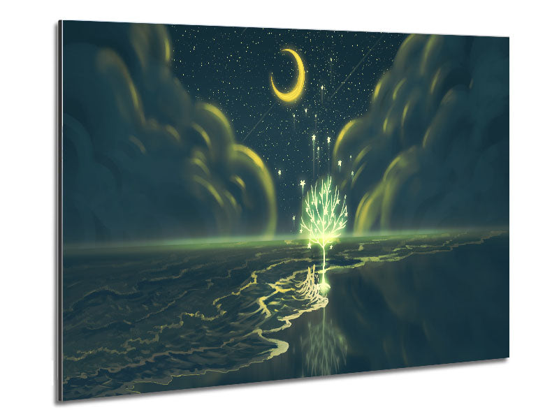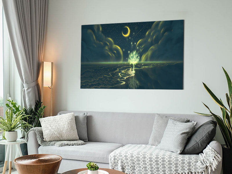 The Crescent Moon Waterline Printed on brushed aluminium dibond. A modern way to display art and easy to maintain.