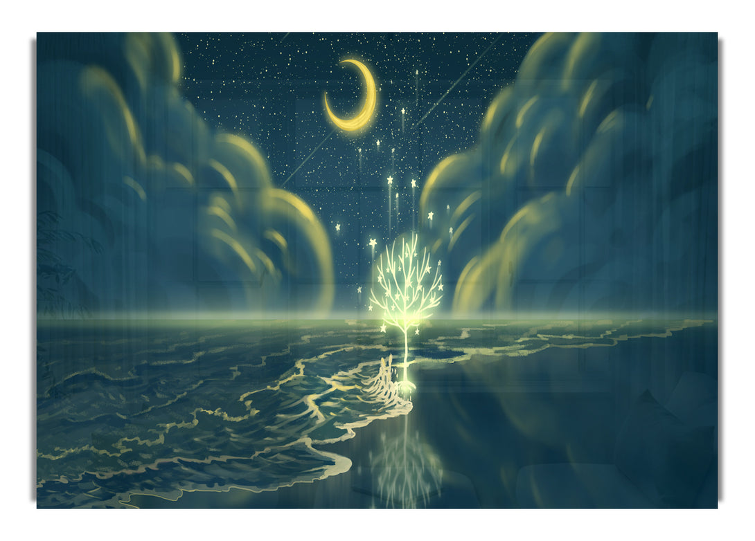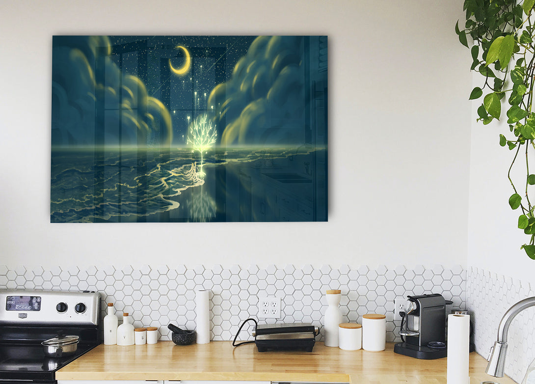 The Crescent Moon Waterline acrylic print, UV printed onto 5mm thick acrylic glass. Comes with everything you need to hang on your wall.