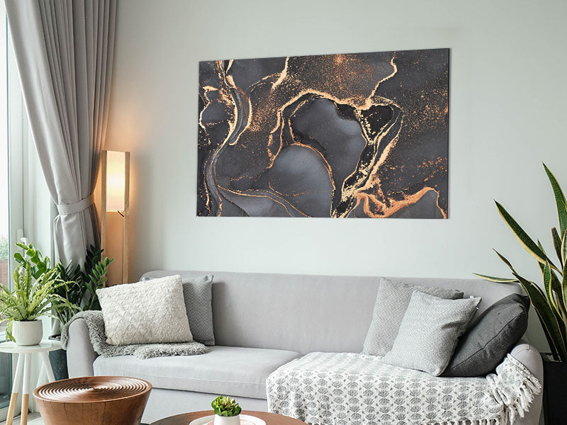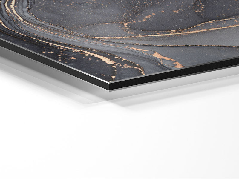 The Dark Grey Darkness Glitter Printed on brushed aluminium dibond. A modern way to display art and easy to maintain.