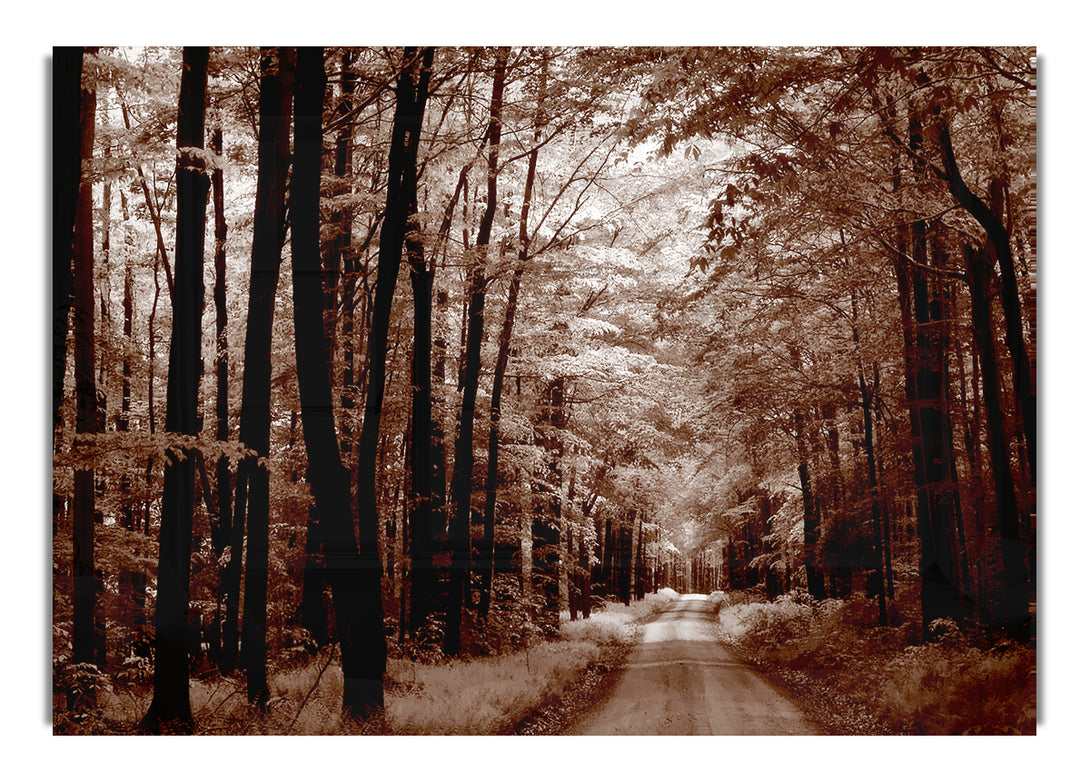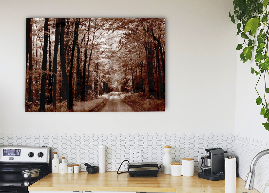 The Forest Road acrylic print, UV printed onto 5mm thick acrylic glass. Comes with everything you need to hang on your wall.