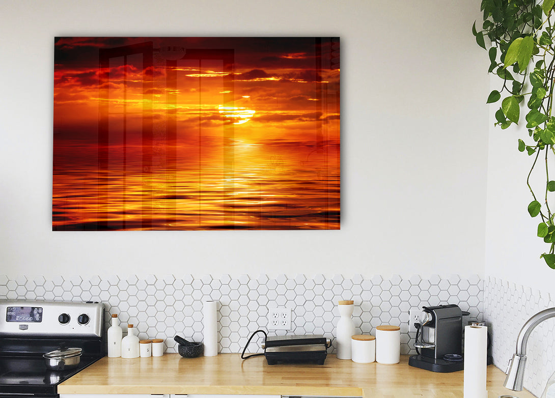 The Glistening Ocean Sun acrylic print, UV printed onto 5mm thick acrylic glass. Comes with everything you need to hang on your wall.