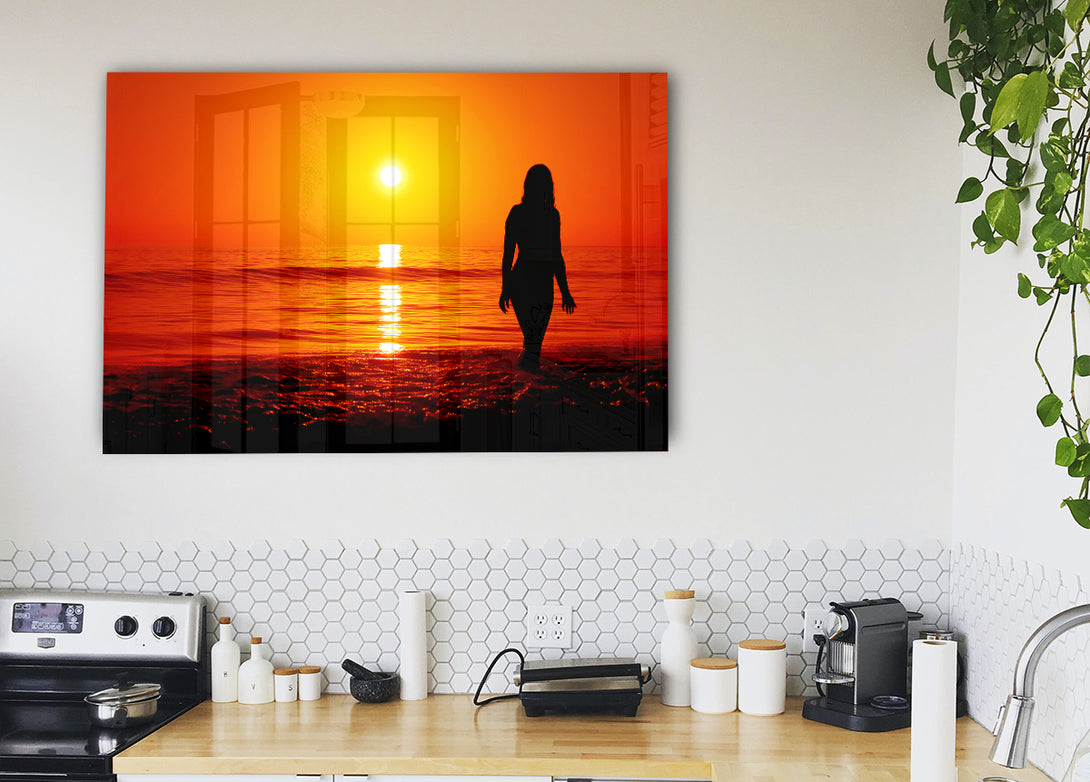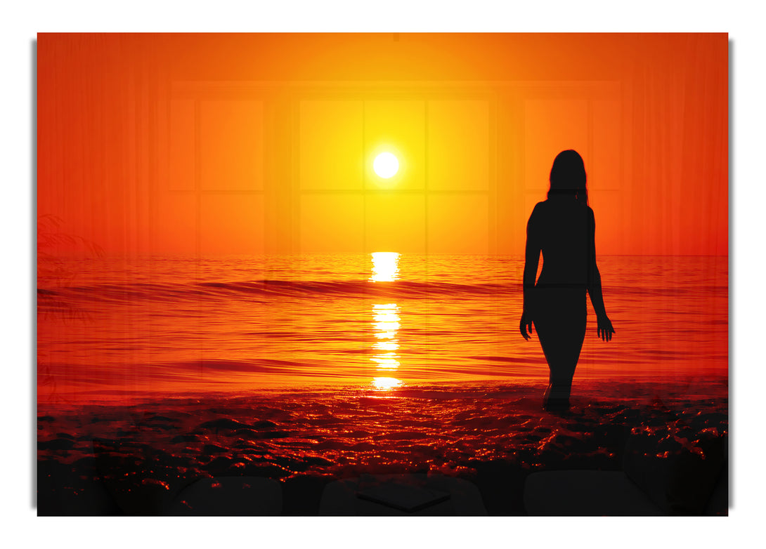 The Goddess Of The Orange Ocean Sun acrylic print, UV printed onto 5mm thick acrylic glass. Comes with everything you need to hang on your wall.