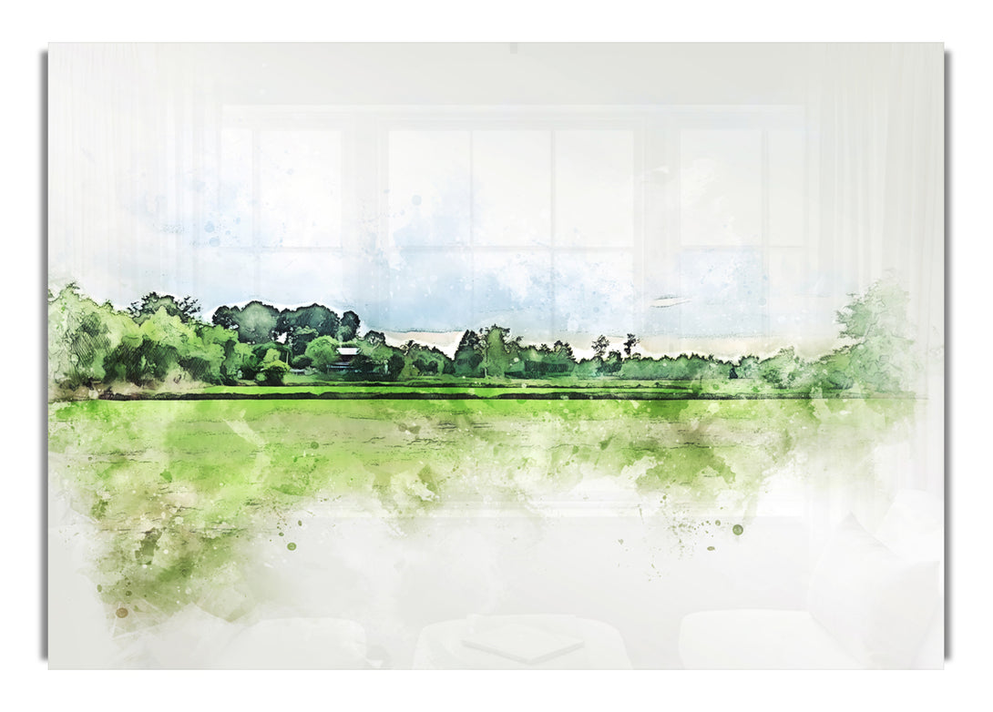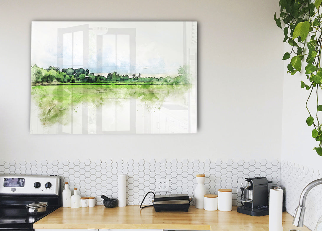 The Green Countryside acrylic print, UV printed onto 5mm thick acrylic glass. Comes with everything you need to hang on your wall.