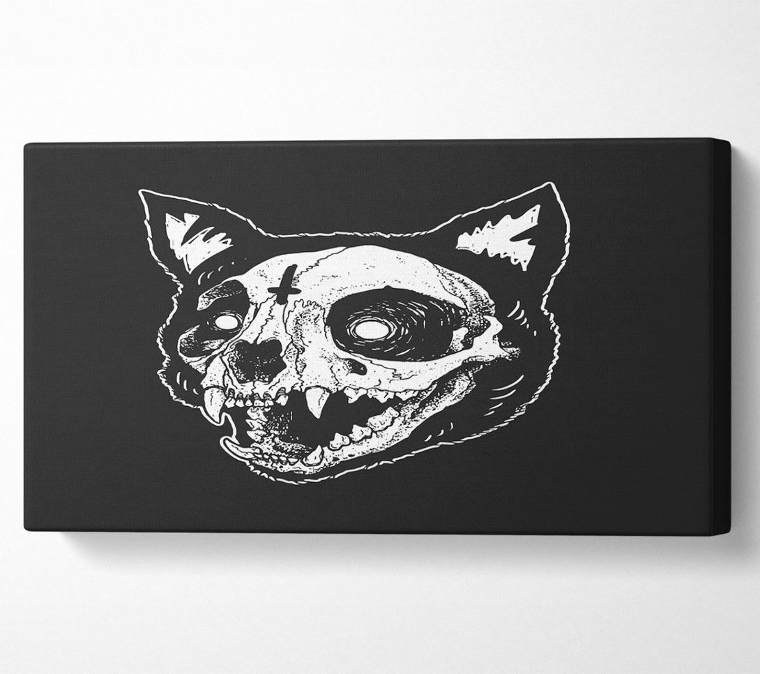The Inverted Cross Cat wide canvas, printed on coated polyester canvas. Mounted on to a 44mm box frame, ready to hang.