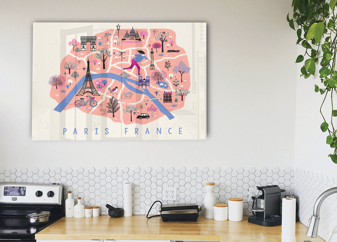The Little Map Of France acrylic print, UV printed onto 5mm thick acrylic glass. Comes with everything you need to hang on your wall.