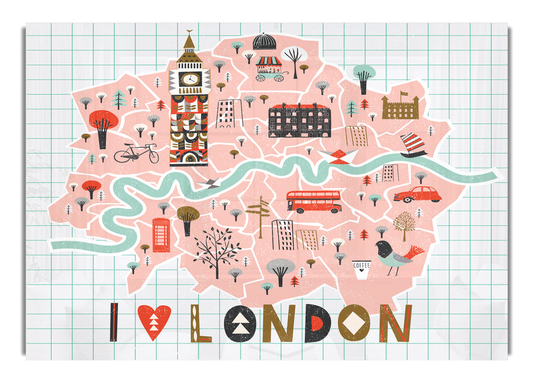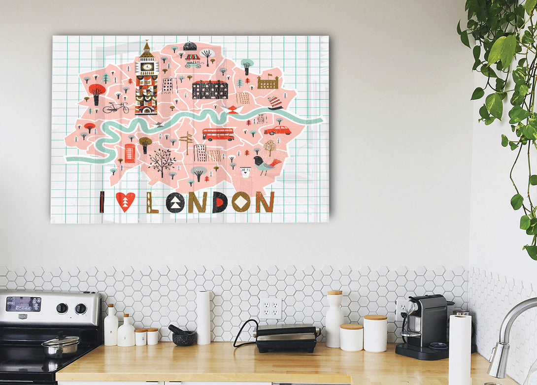 The Little Map Of London 2 acrylic print, UV printed onto 5mm thick acrylic glass. Comes with everything you need to hang on your wall.