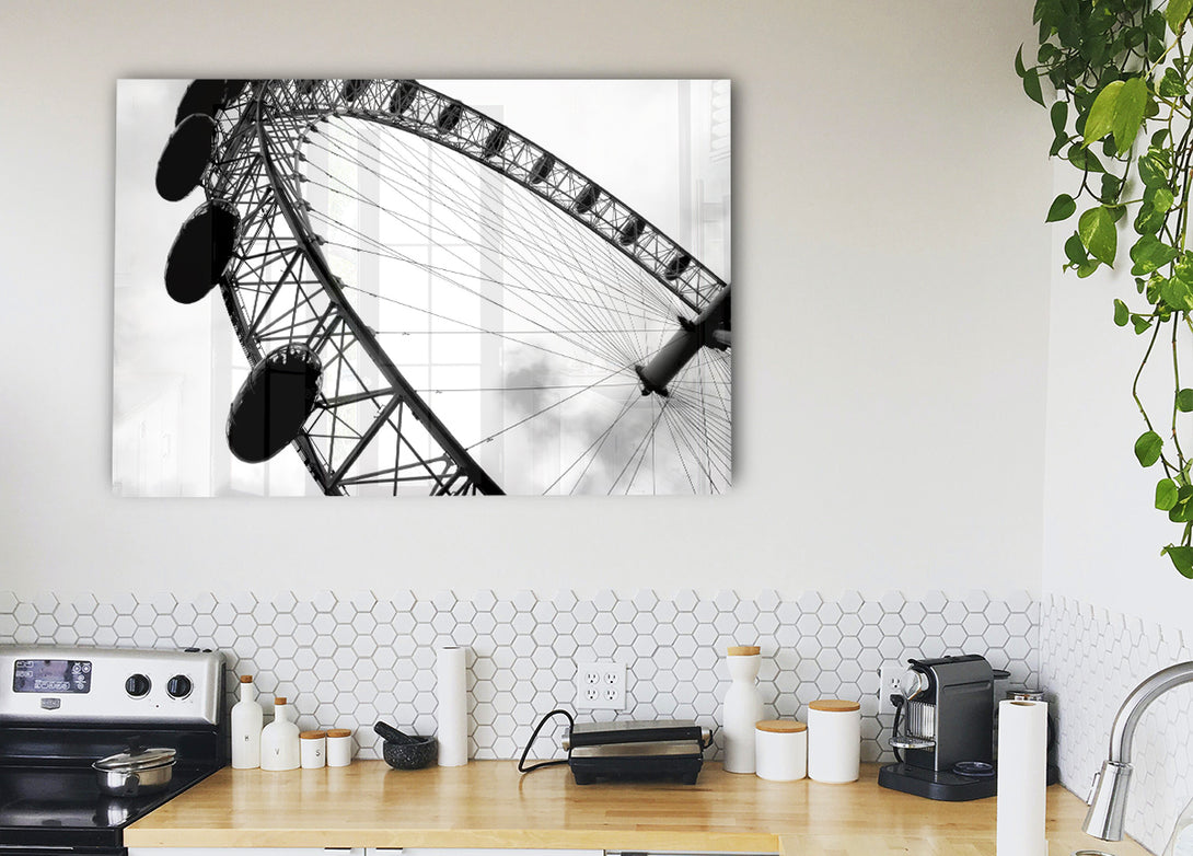 The London Eye Black And White acrylic print, UV printed onto 5mm thick acrylic glass. Comes with everything you need to hang on your wall.