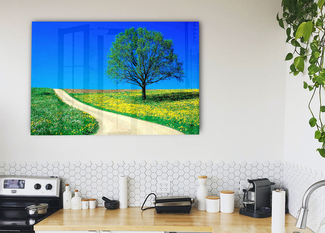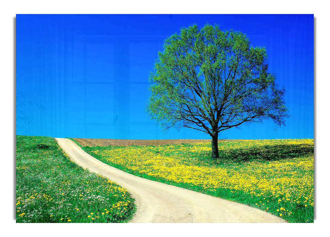 The Lonely Tree Road acrylic print, UV printed onto 5mm thick acrylic glass. Comes with everything you need to hang on your wall.