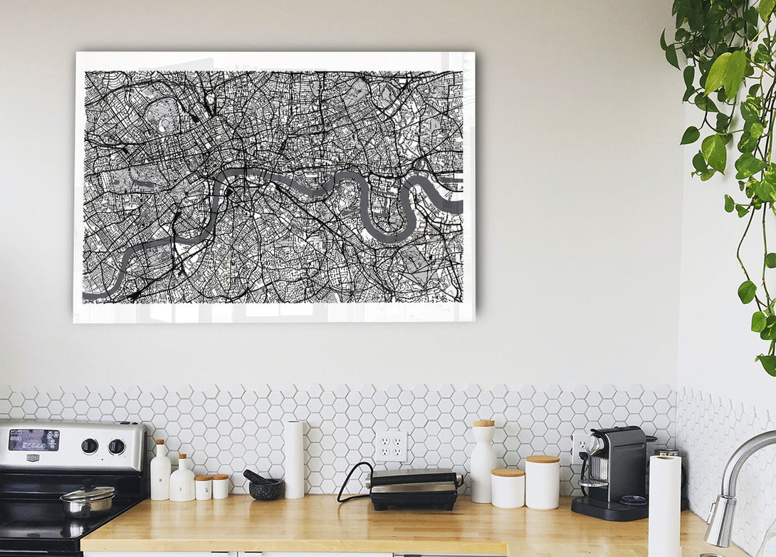 The Map Of London Thames 4 acrylic print, UV printed onto 5mm thick acrylic glass. Comes with everything you need to hang on your wall.
