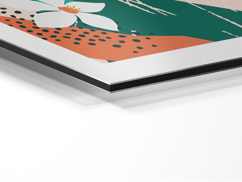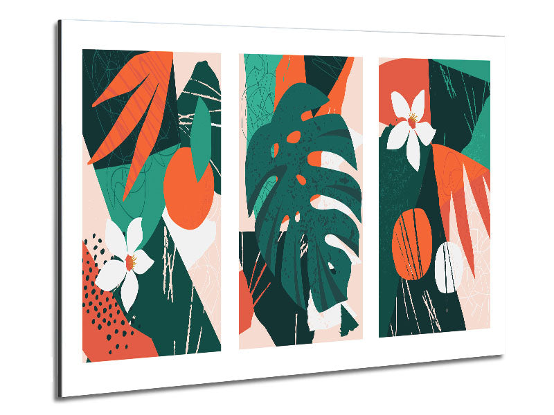 The Modern Cheese Plant Set Printed on brushed aluminium dibond. A modern way to display art and easy to maintain.