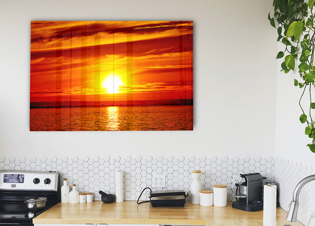 The Oceans Golden Delight acrylic print, UV printed onto 5mm thick acrylic glass. Comes with everything you need to hang on your wall.