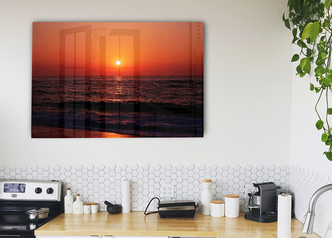 The Oceans Orange Sun acrylic print, UV printed onto 5mm thick acrylic glass. Comes with everything you need to hang on your wall.
