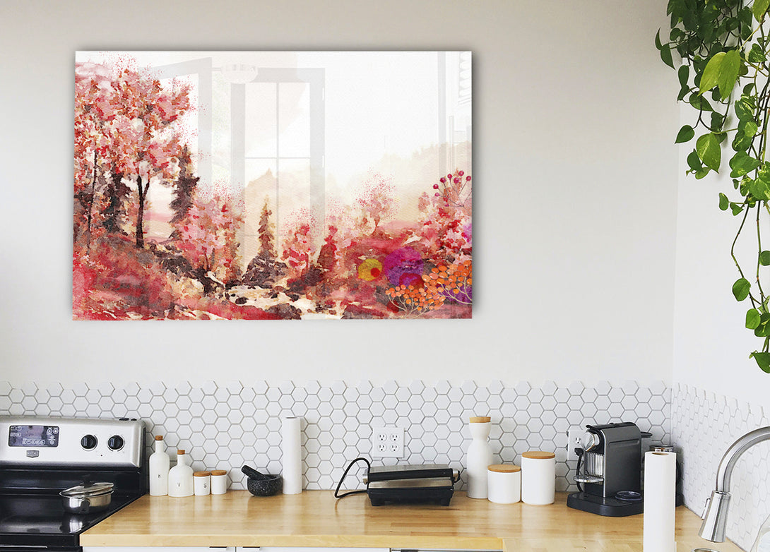 The Orange Forest Of Serenity acrylic print, UV printed onto 5mm thick acrylic glass. Comes with everything you need to hang on your wall.