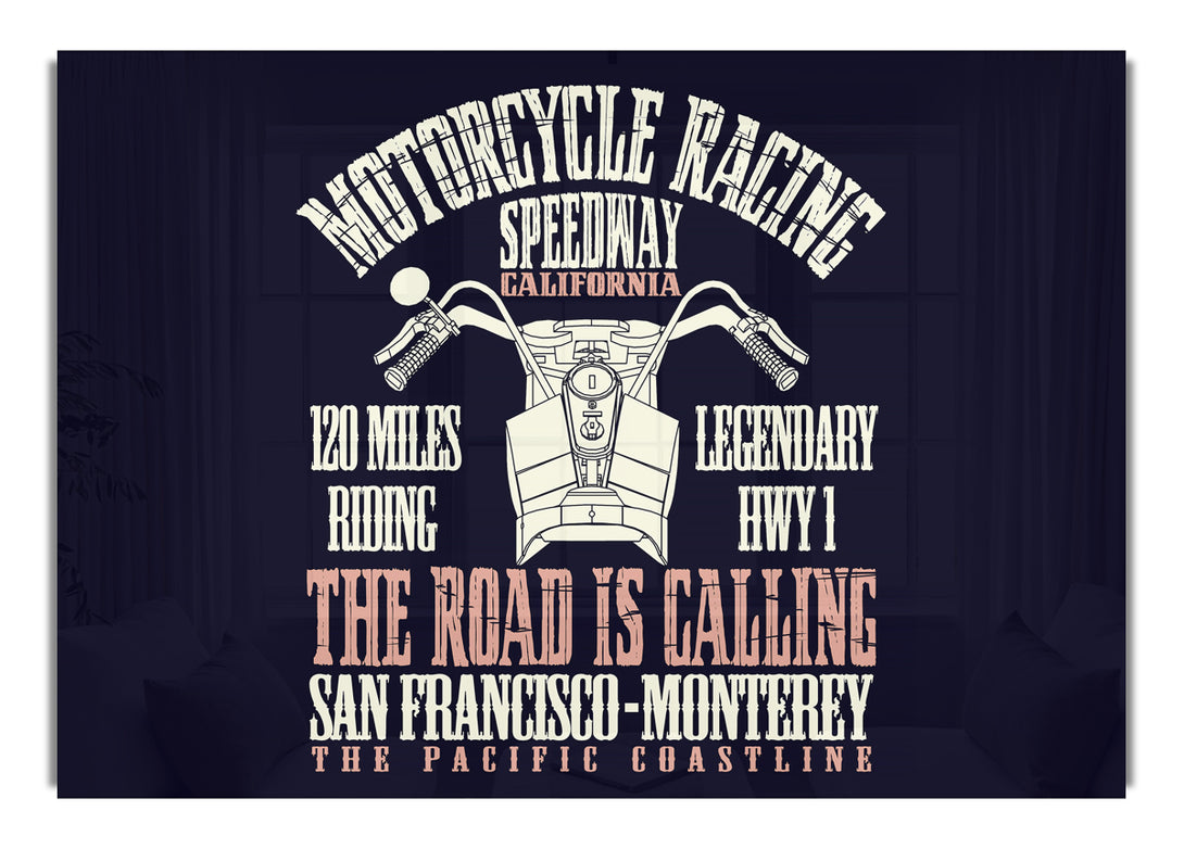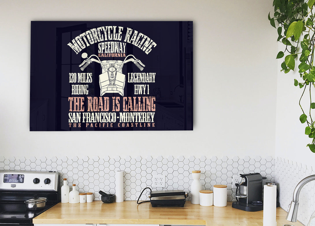 The Pacific Coastline Motorcycle Race acrylic print, UV printed onto 5mm thick acrylic glass. Comes with everything you need to hang on your wall.