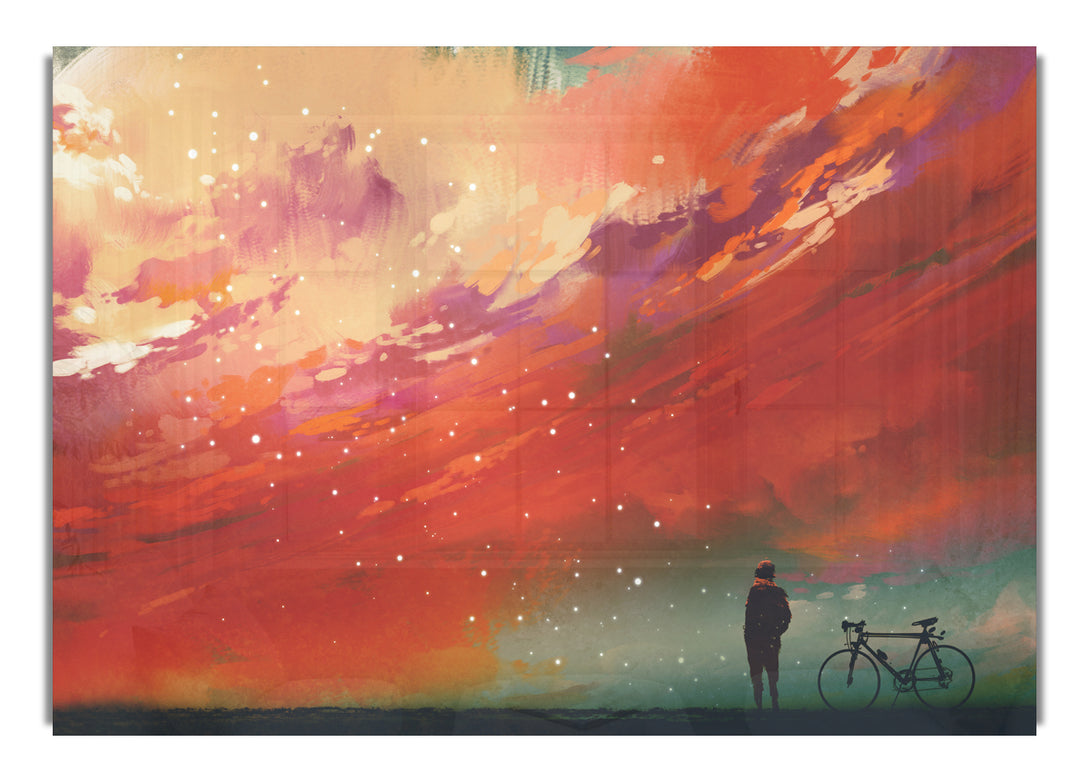 The Peach Universe acrylic print, UV printed onto 5mm thick acrylic glass. Comes with everything you need to hang on your wall.