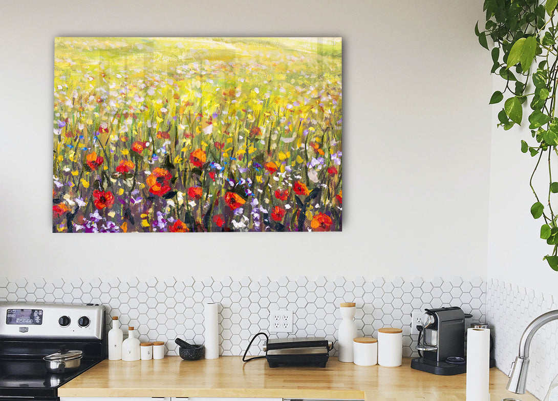 The Poppies Field Of Light acrylic print, UV printed onto 5mm thick acrylic glass. Comes with everything you need to hang on your wall.