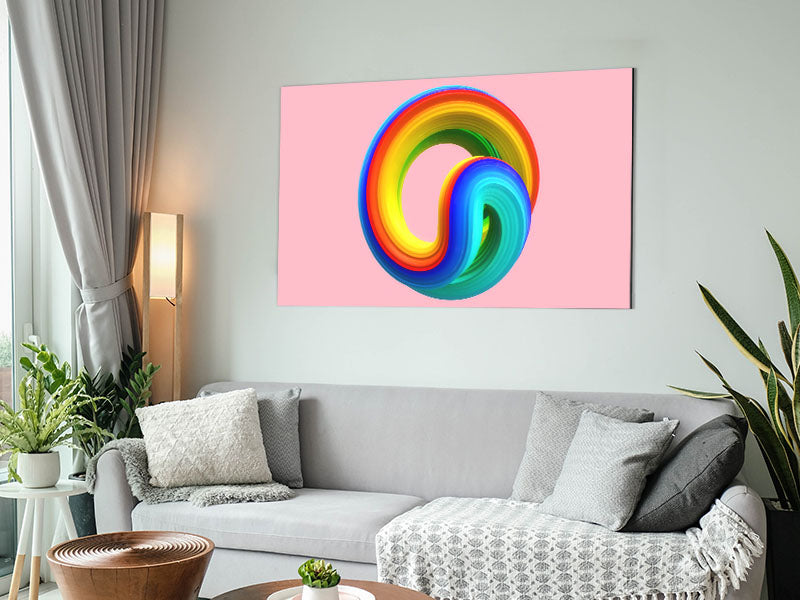 The Rainbow Swirl Paste Printed on brushed aluminium dibond. A modern way to display art and easy to maintain.
