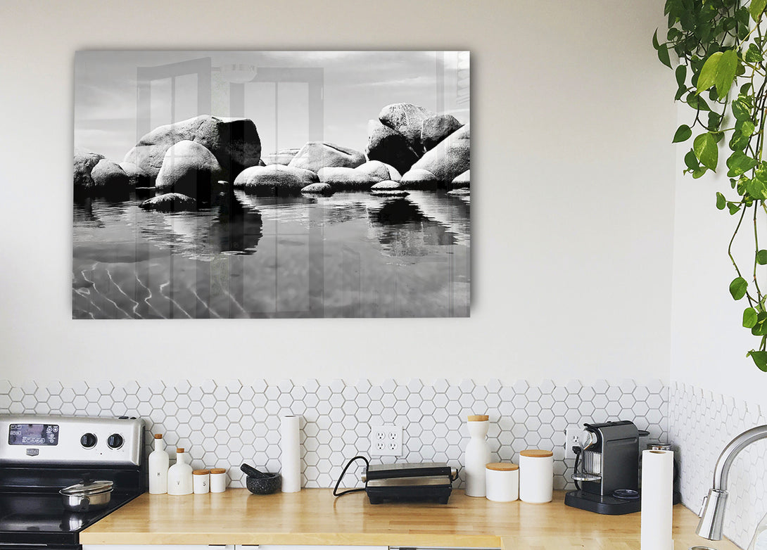The Rock Pool B~w acrylic print, UV printed onto 5mm thick acrylic glass. Comes with everything you need to hang on your wall.