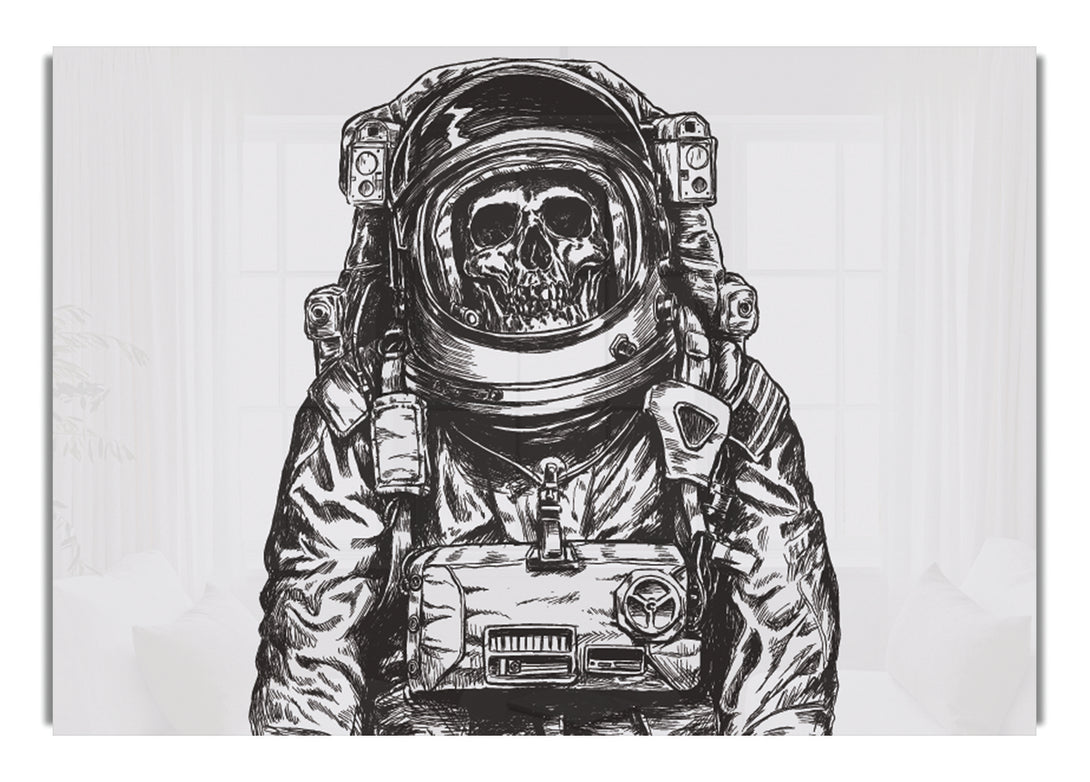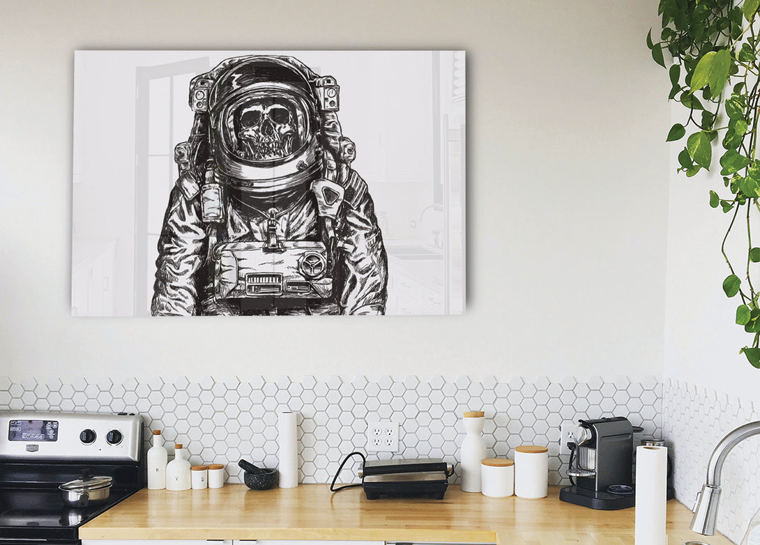 The Skeleton Space Explorer acrylic print, UV printed onto 5mm thick acrylic glass. Comes with everything you need to hang on your wall.