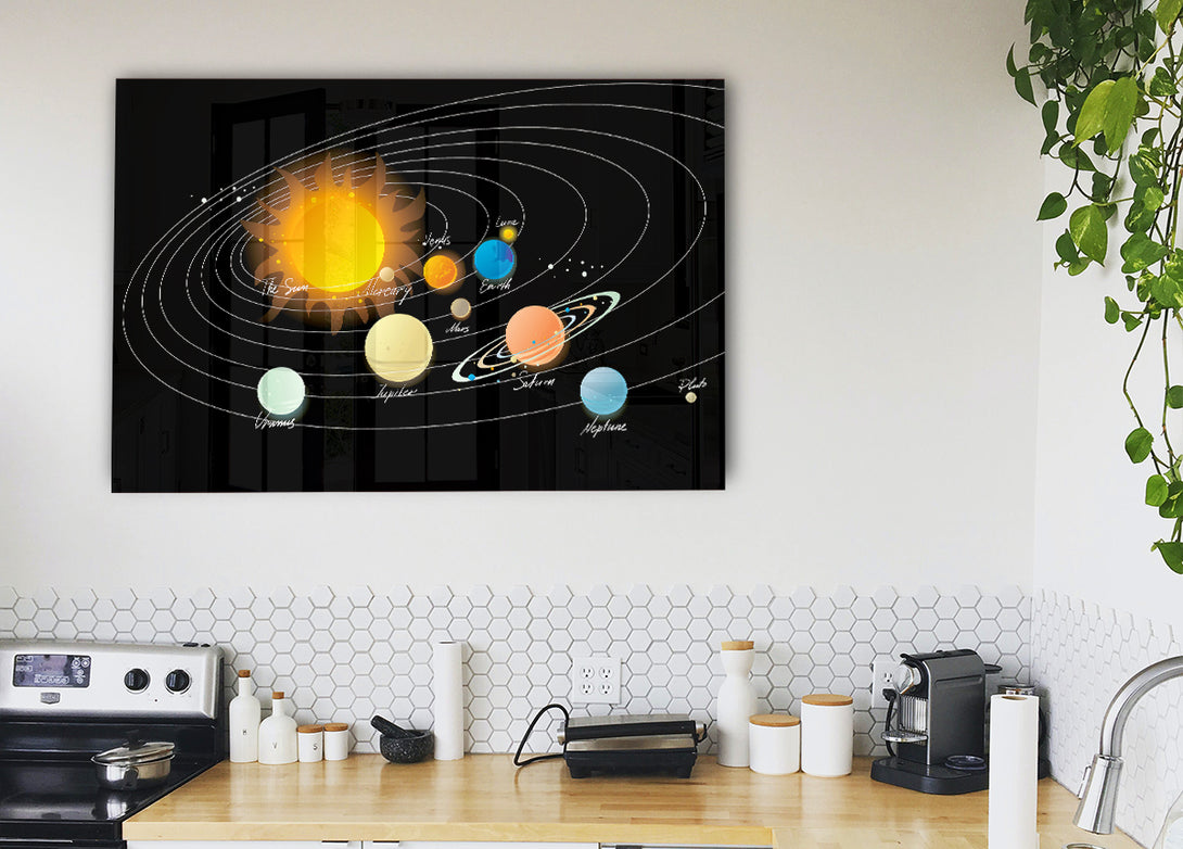 The Solar System 1 acrylic print, UV printed onto 5mm thick acrylic glass. Comes with everything you need to hang on your wall.