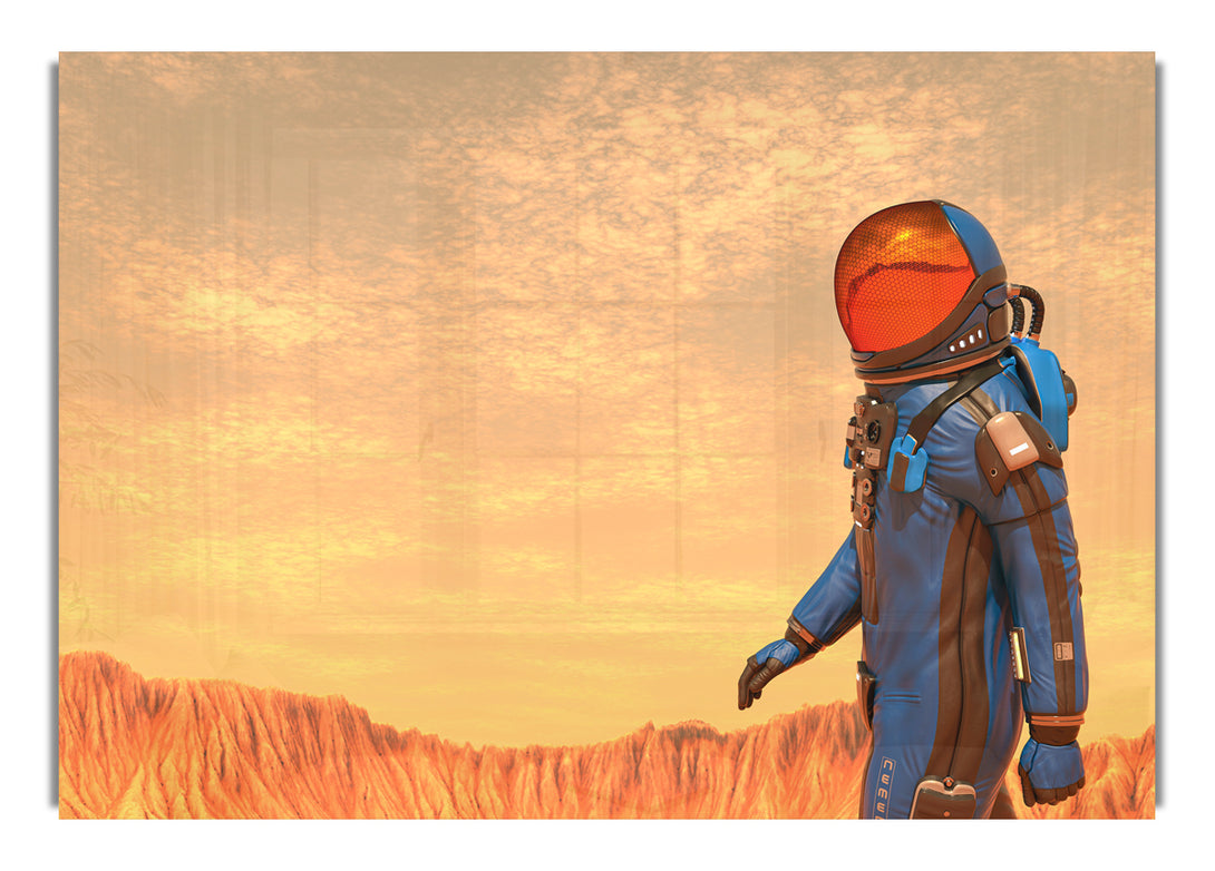 The Space Man In Mars acrylic print, UV printed onto 5mm thick acrylic glass. Comes with everything you need to hang on your wall.