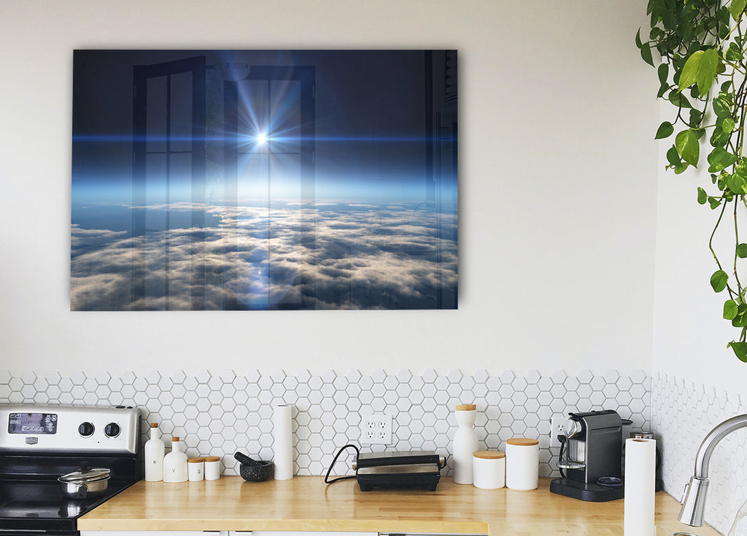 The sun above the clouds and atmostphere acrylic print, UV printed onto 5mm thick acrylic glass. Comes with everything you need to hang on your wall.
