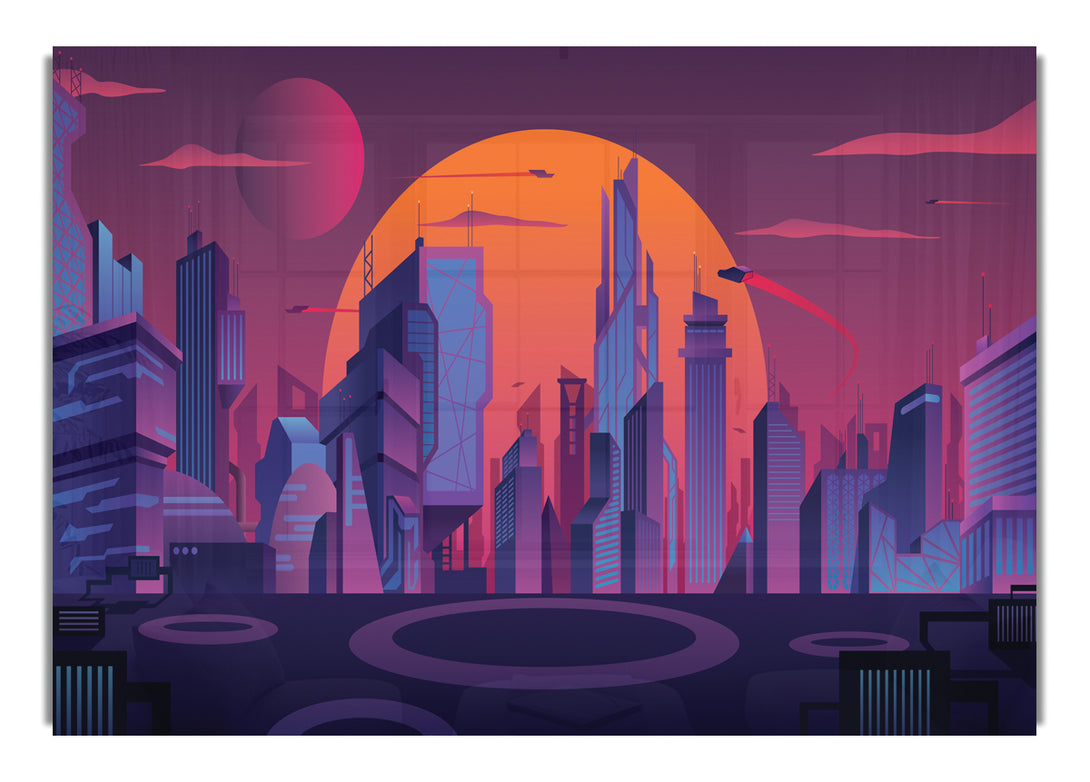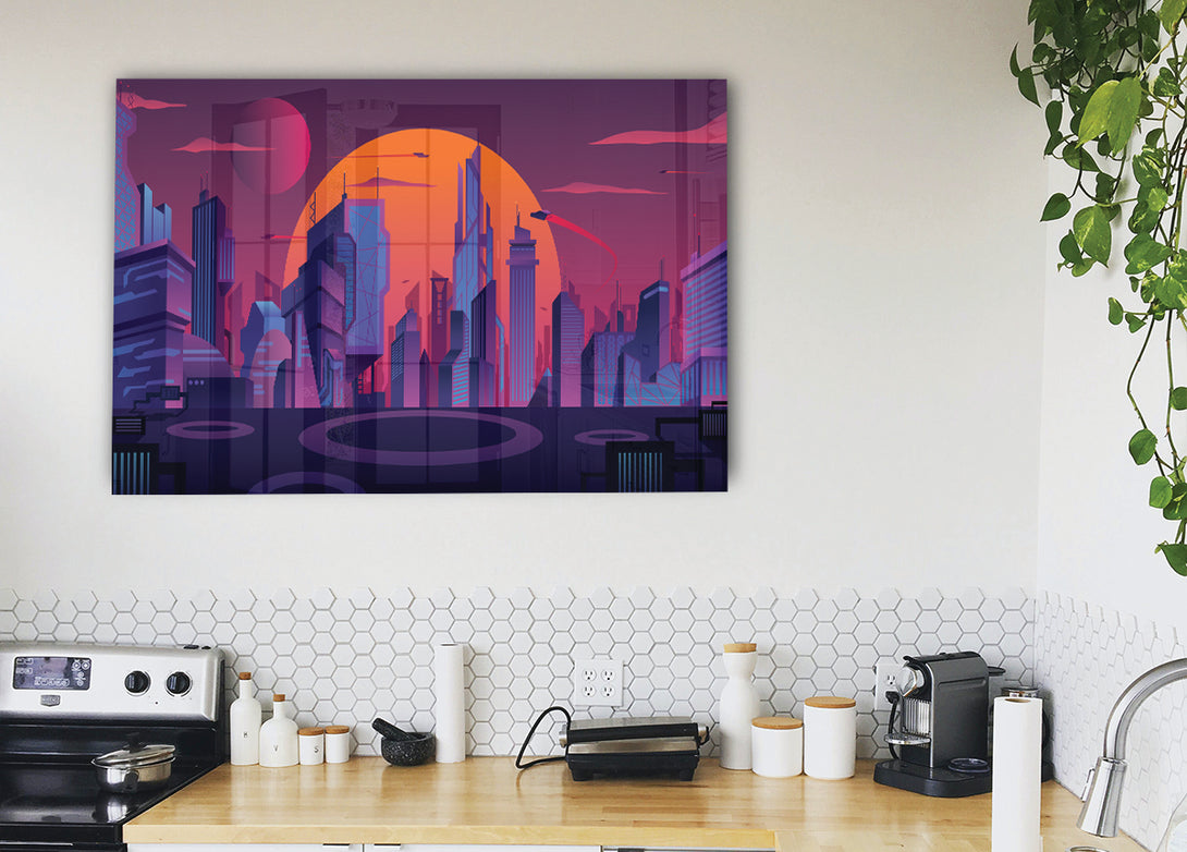 The Sun Behind The City acrylic print, UV printed onto 5mm thick acrylic glass. Comes with everything you need to hang on your wall.