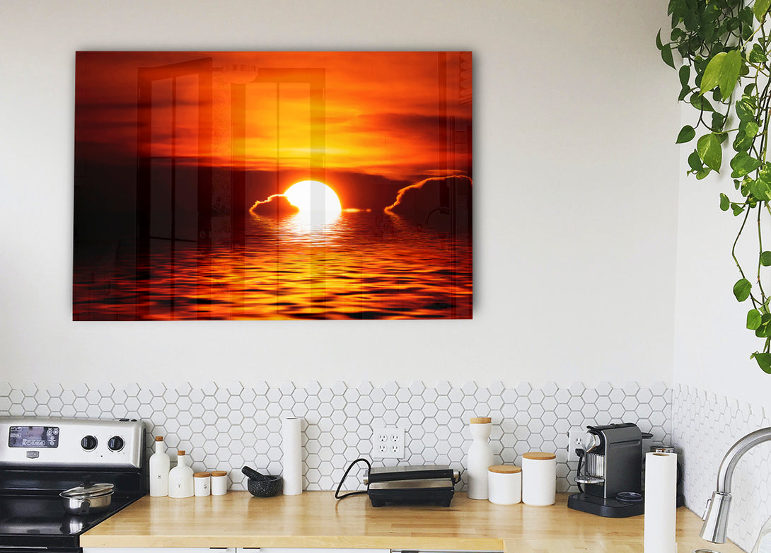 The Sun Falls In The Ocean acrylic print, UV printed onto 5mm thick acrylic glass. Comes with everything you need to hang on your wall.