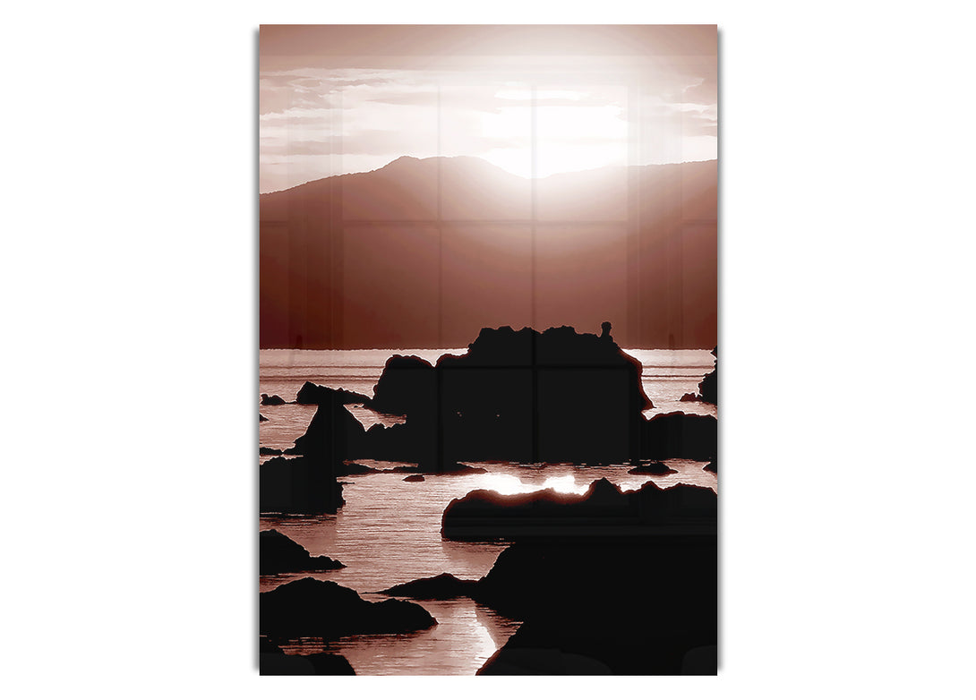 The Suns Mauve Ocean Rocks acrylic print, UV printed onto 5mm thick acrylic glass. Comes with everything you need to hang on your wall.