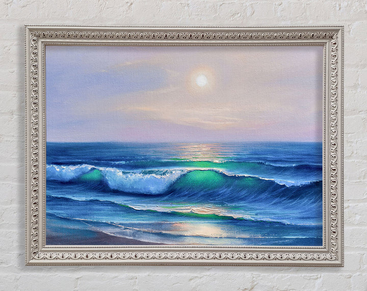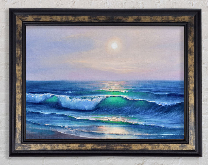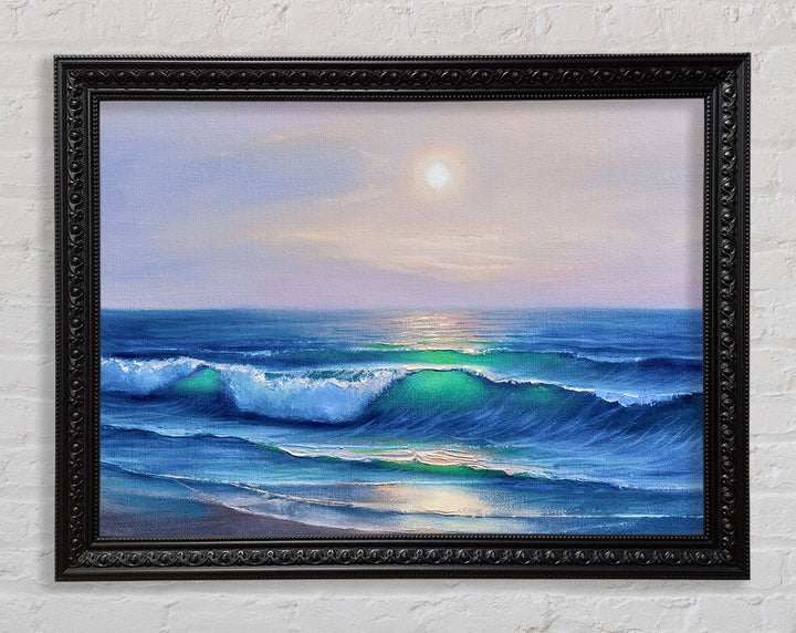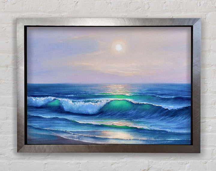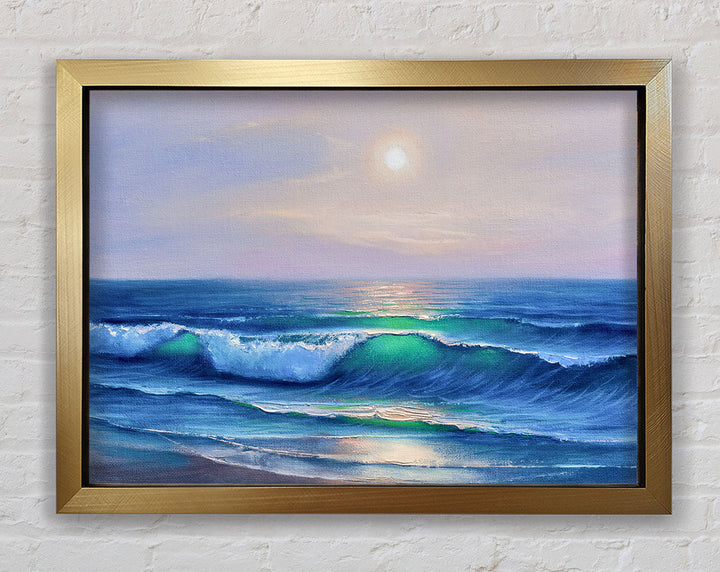 Introducing The Waves At Dusk Framed Print, a stunning piece of framed art designed to bring the serene beauty of the ocean into your home. This captivating print captures the gentle waves as the sun sets, casting a warm glow across the water. Available in six sizes, from small to oversized, you can find the perfect fit for any space. Choose from a variety of frame colors to match your decor. Each print is handmade in the United Kingdom, ensuring top-notch craftsmanship. Ready to hang, this framed art makes it easy to instantly transform your living room, bedroom, or office into a peaceful retreat.
