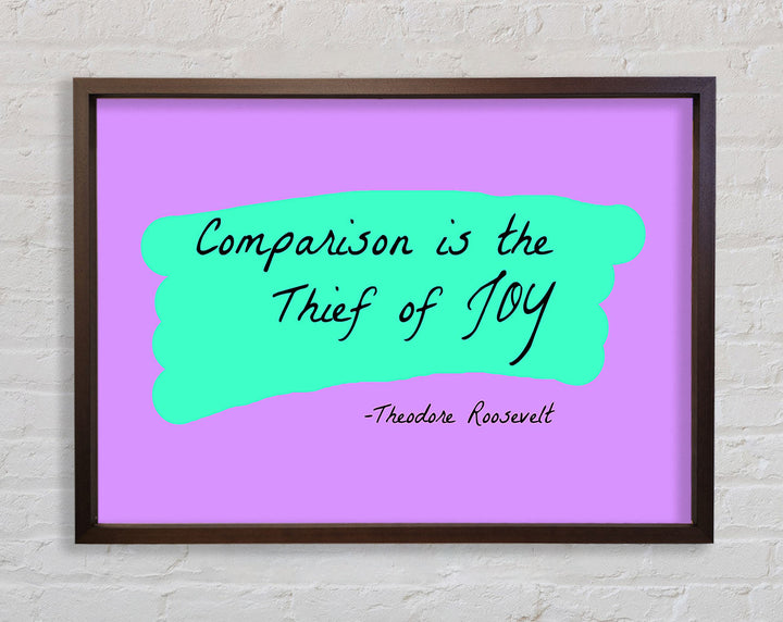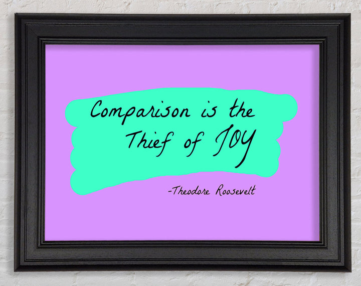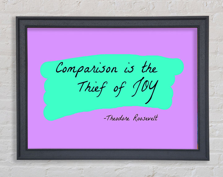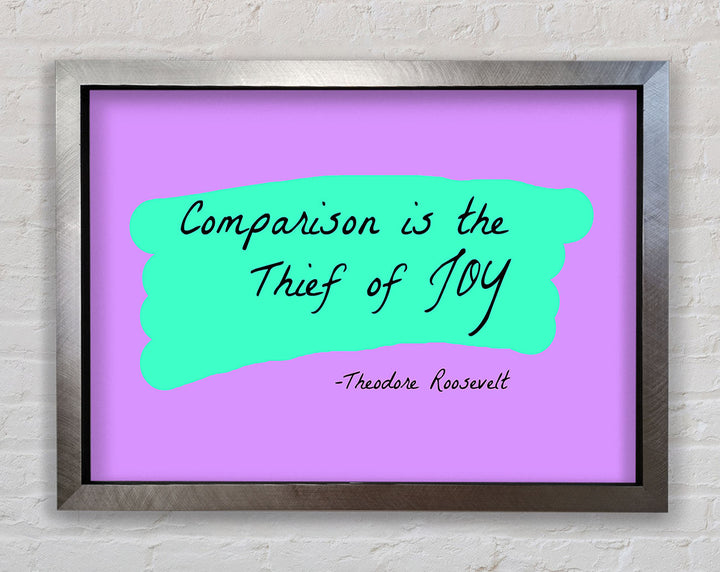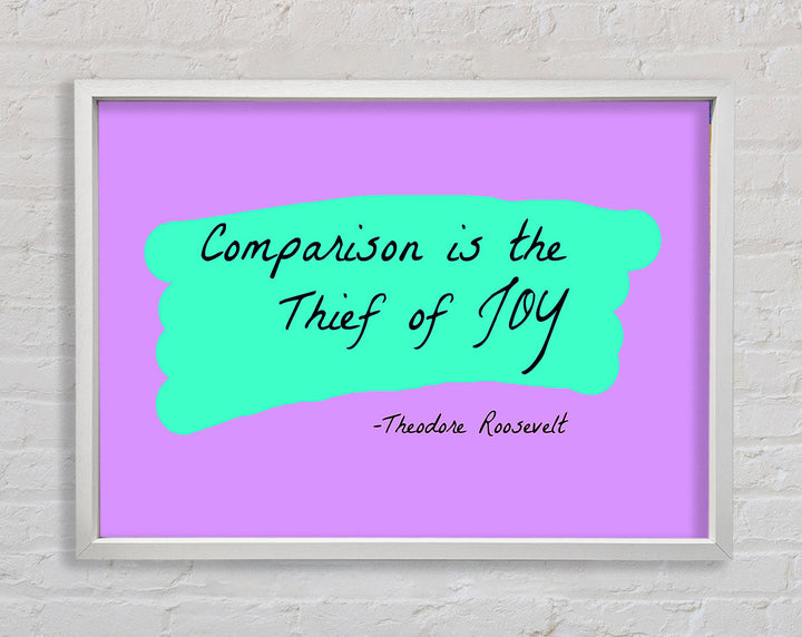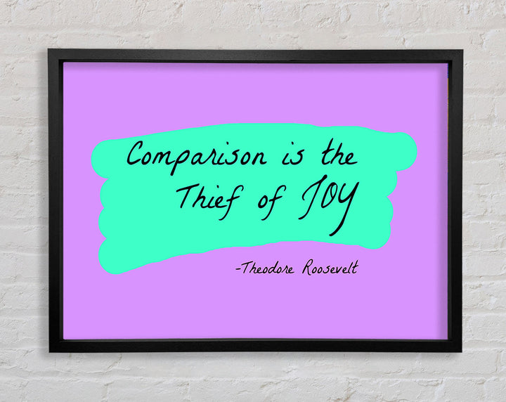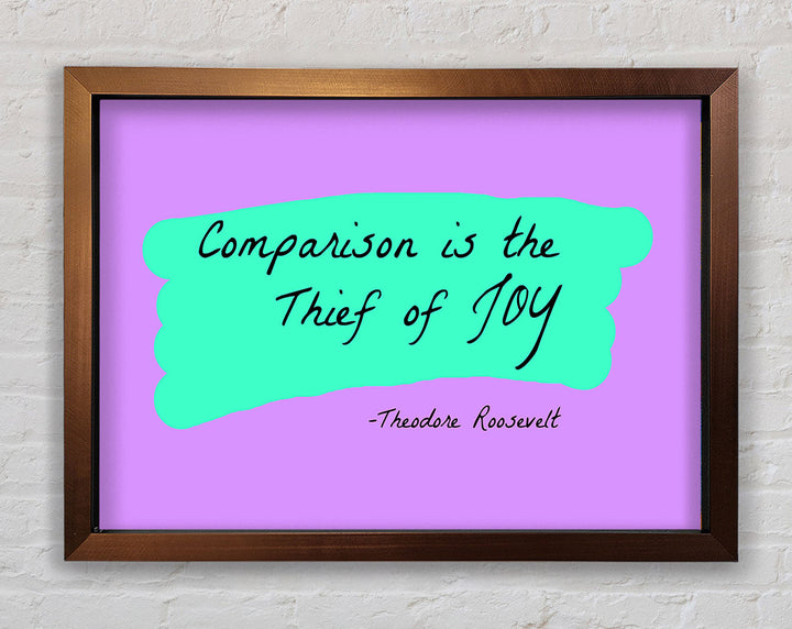 Add a touch of inspiration to your home with the Theodore Roosevelt "Comparison Is The Thief Of Joy" Framed Print. This beautifully crafted framed art piece serves as a daily reminder to focus on your own journey. Available in six sizes, from small to oversized, this print can fit any space perfectly. Choose from a variety of colors to match your décor. Handmade in the United Kingdom, each frame is carefully constructed to ensure high quality. Ready to hang, this framed art makes it easy to enhance your living room, bedroom, or office instantly. Elevate your space with meaningful art that speaks to the soul.